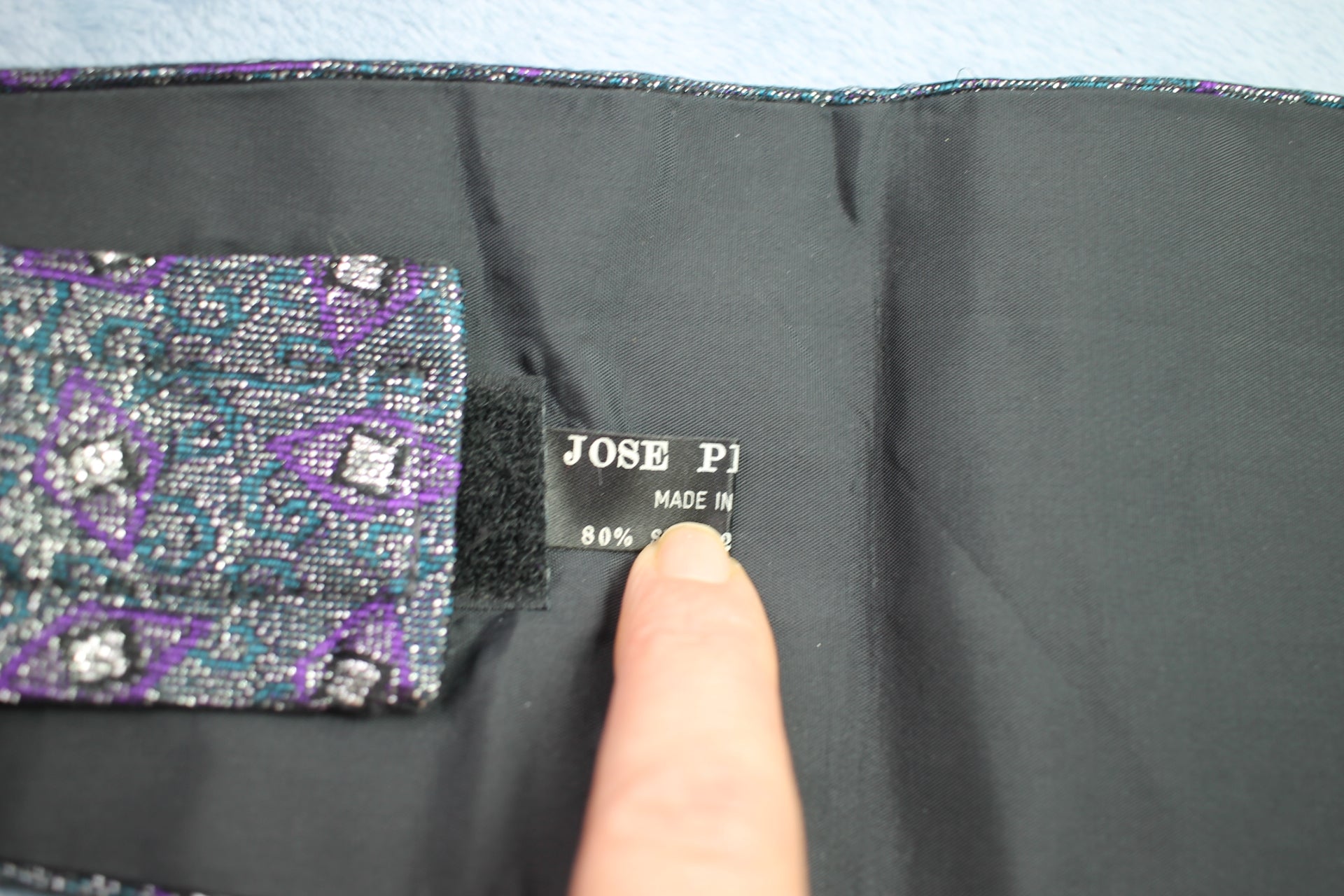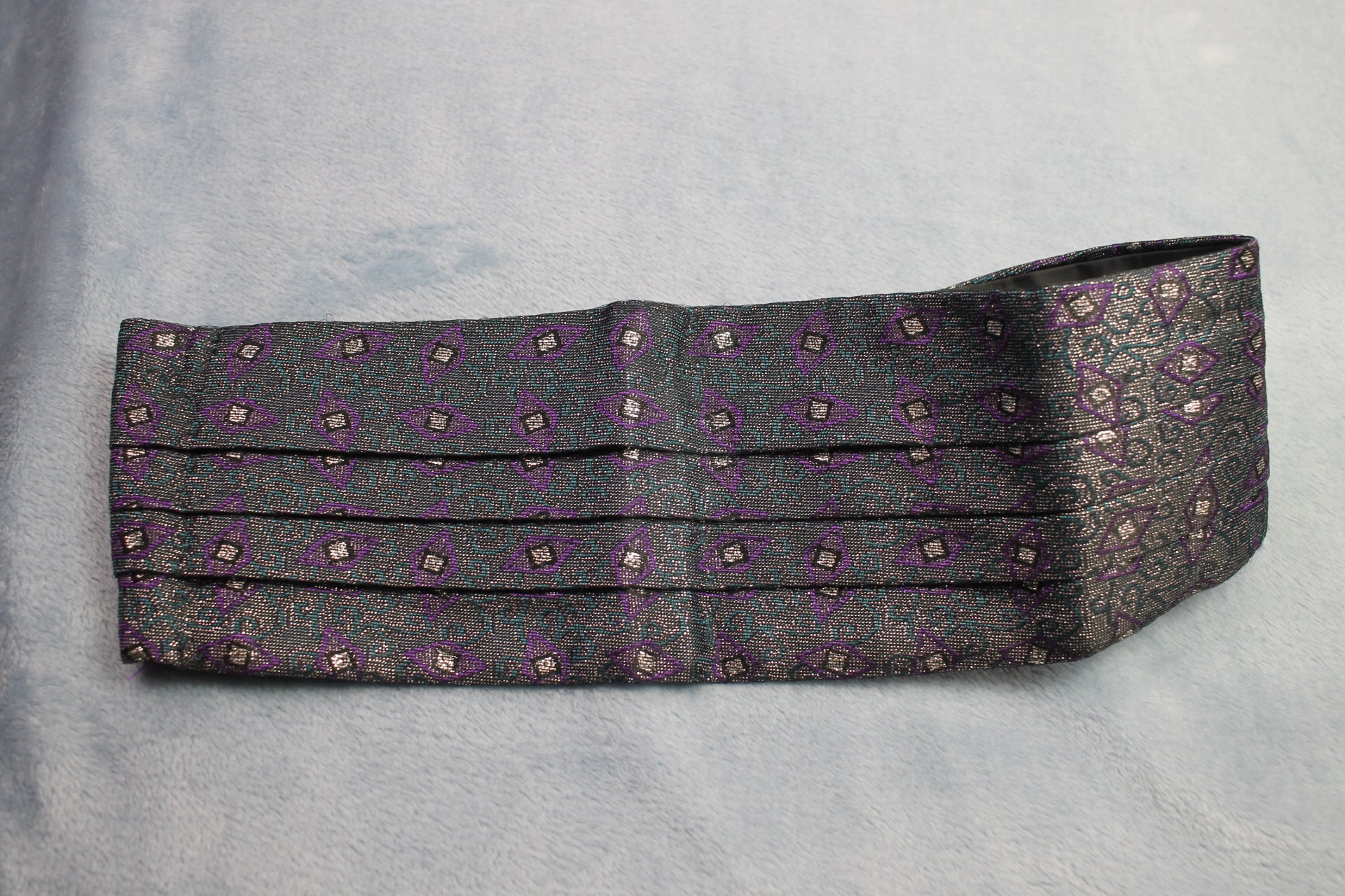 Vintage Jose Piscador green purple silver sparkly pleated cummerbund