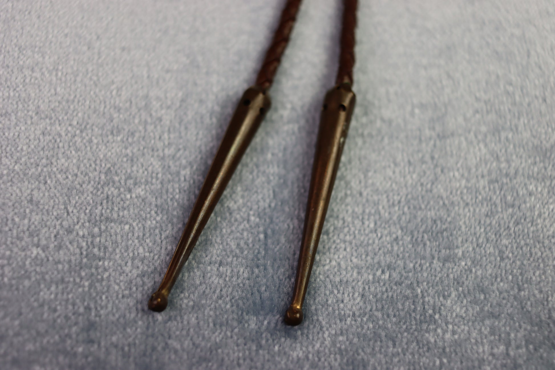Brown plaited cord, 90cm total length approx including the aiglets.