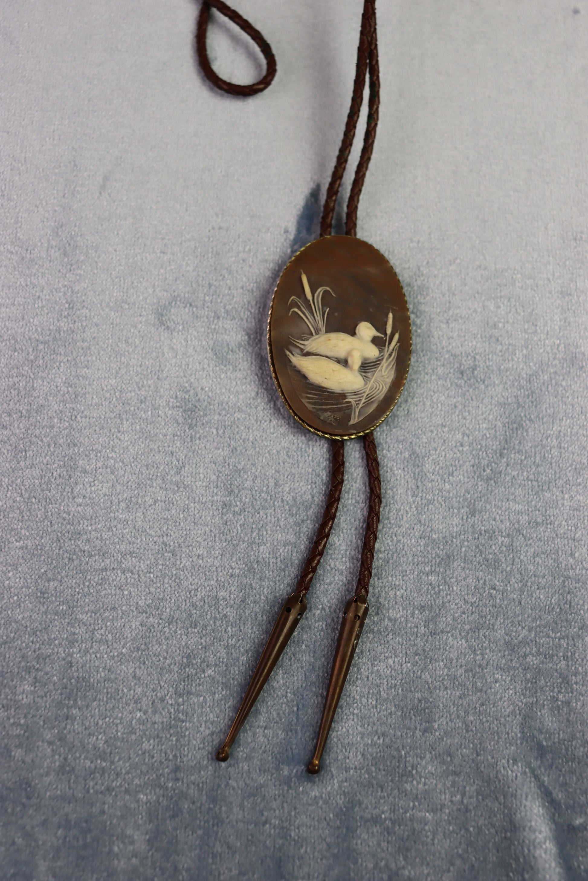Vintage Large Oval Duck Scene Bolo Western Tie