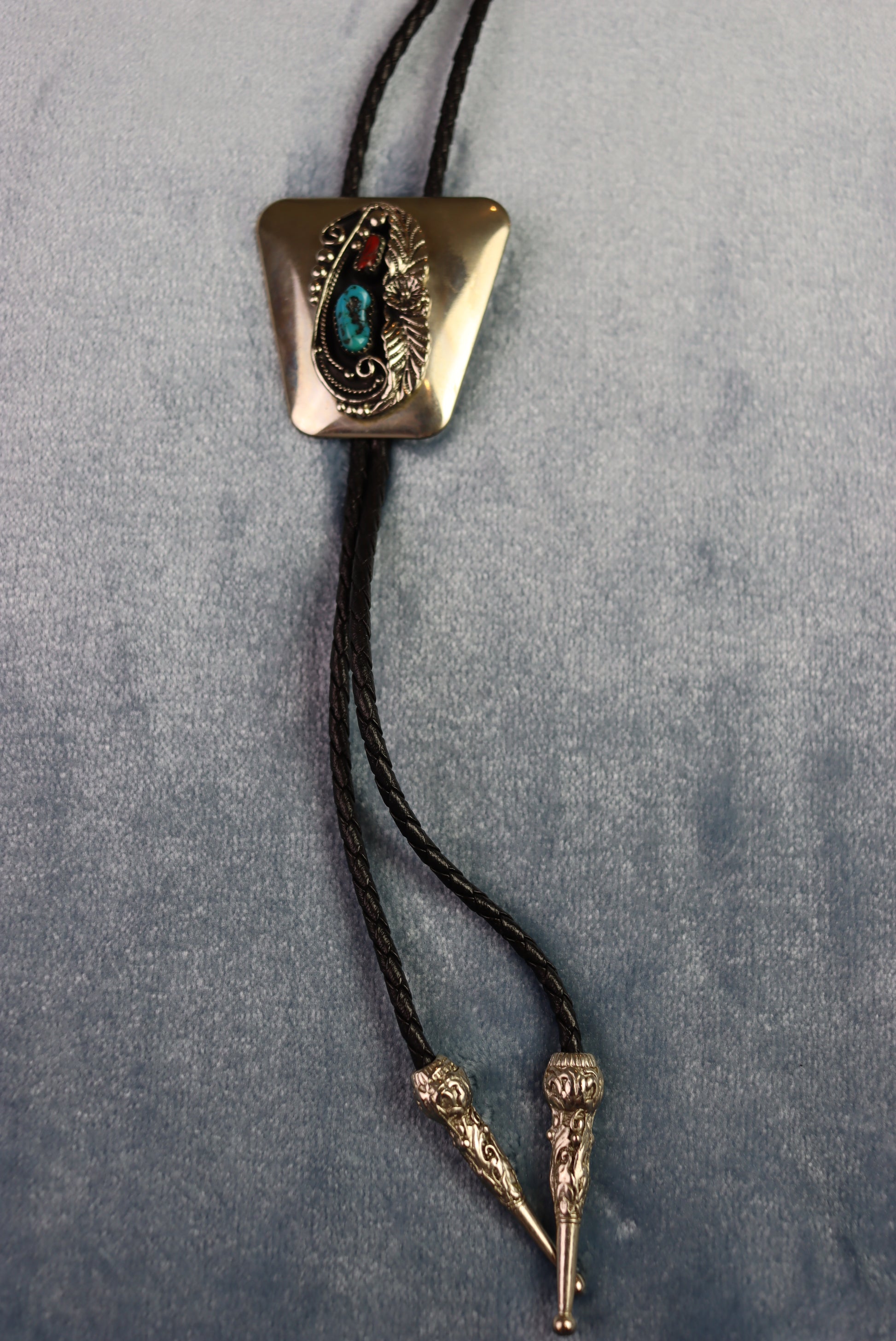 Vintage Large Stones and Metalwork Bolo Western Tie