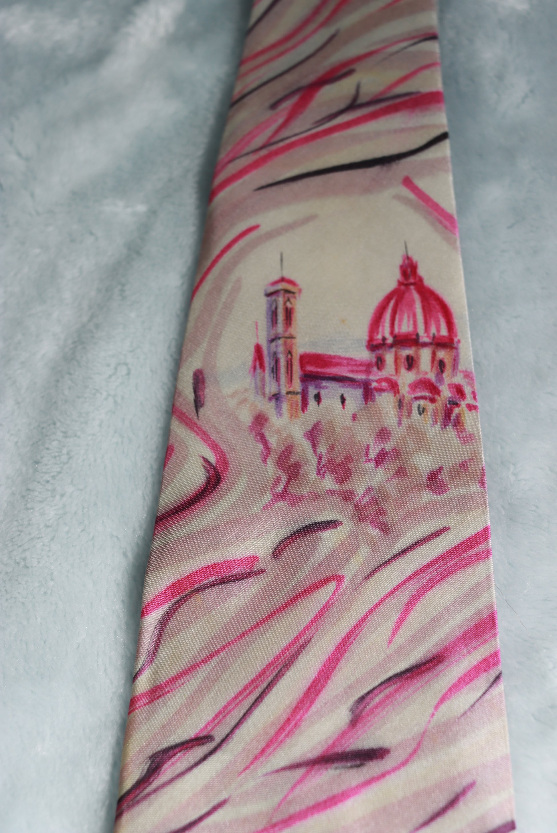A hand painted tie featuring a view of the Cathedral of Santa Maria del Fiore. Signed by the artist.