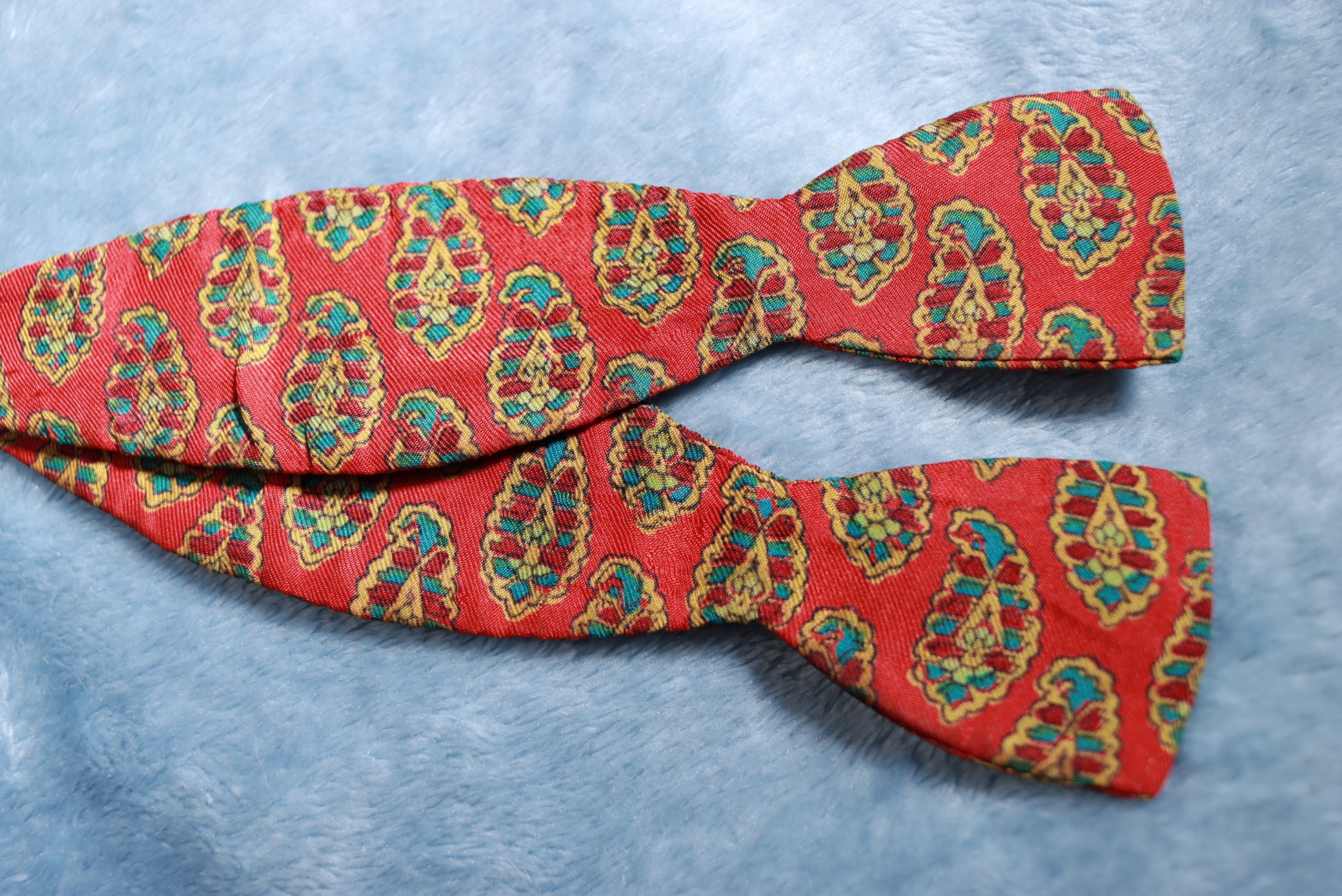 Vintage Narrow Thistle Liberty Red Paisley Bow Tie