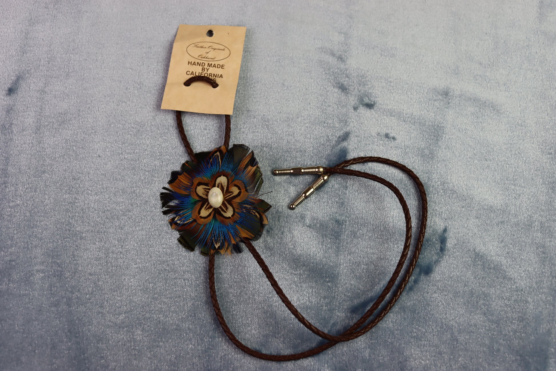 Vintage New Dead Stock Handmade California Indian Feather Bolo Western Tie