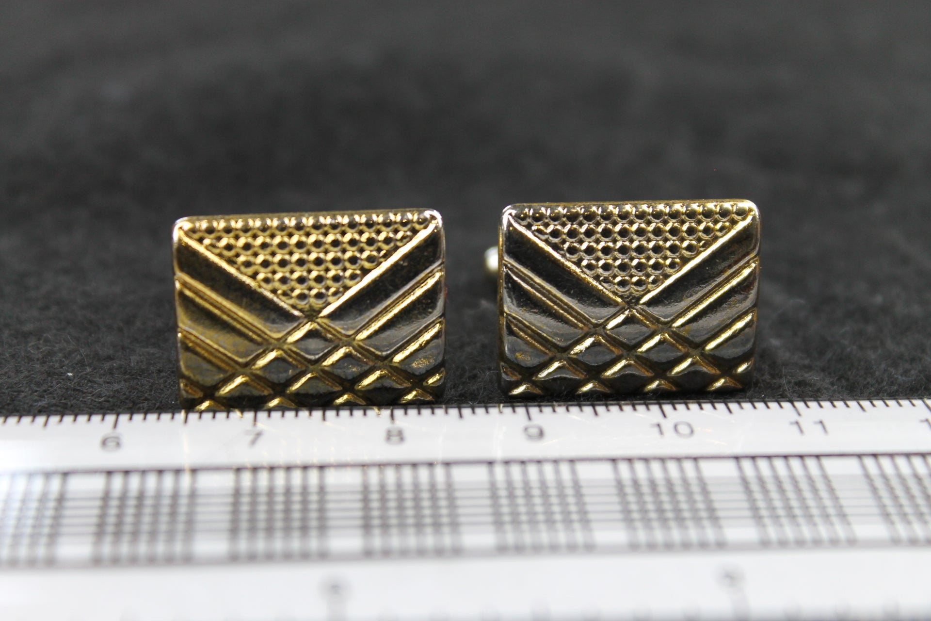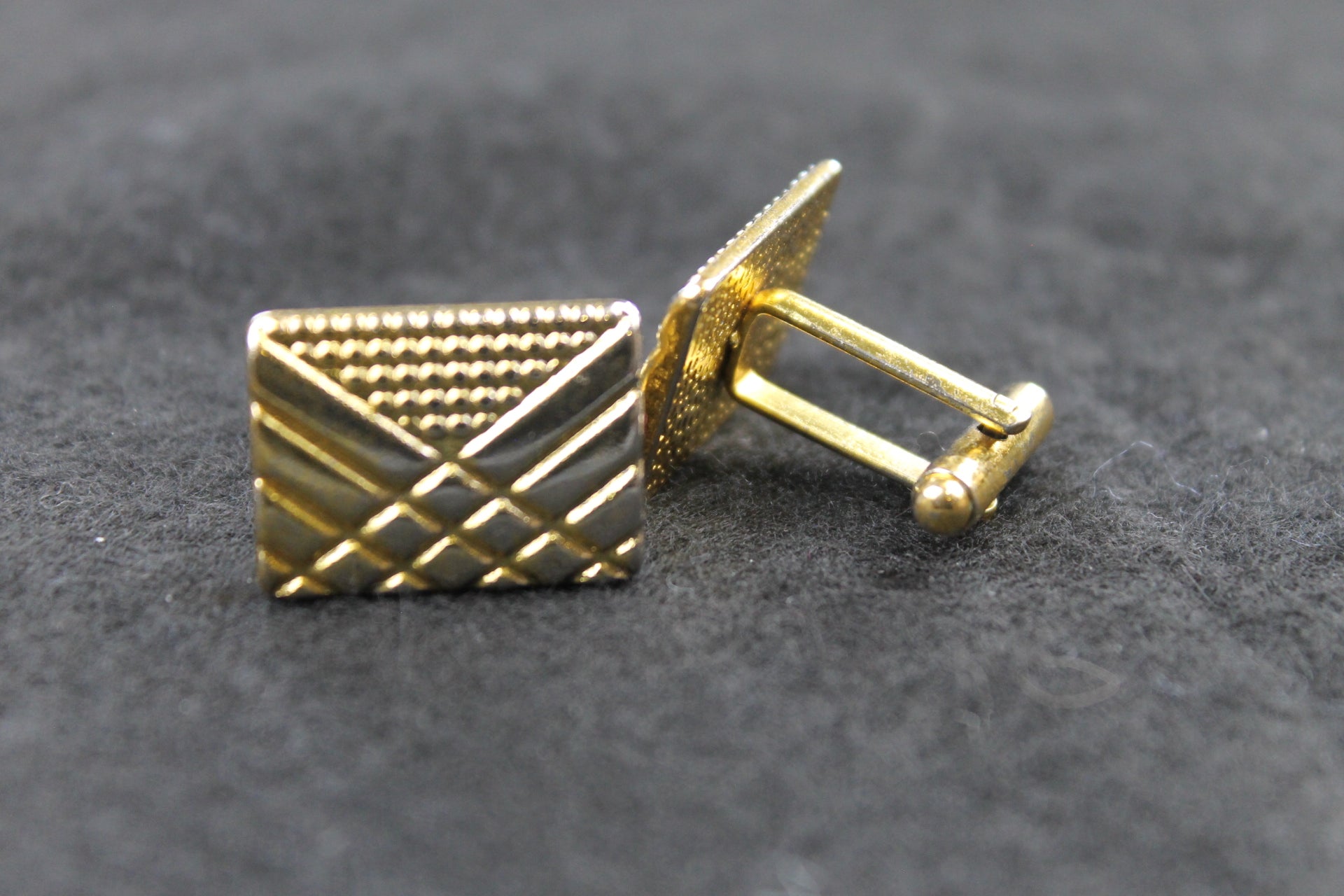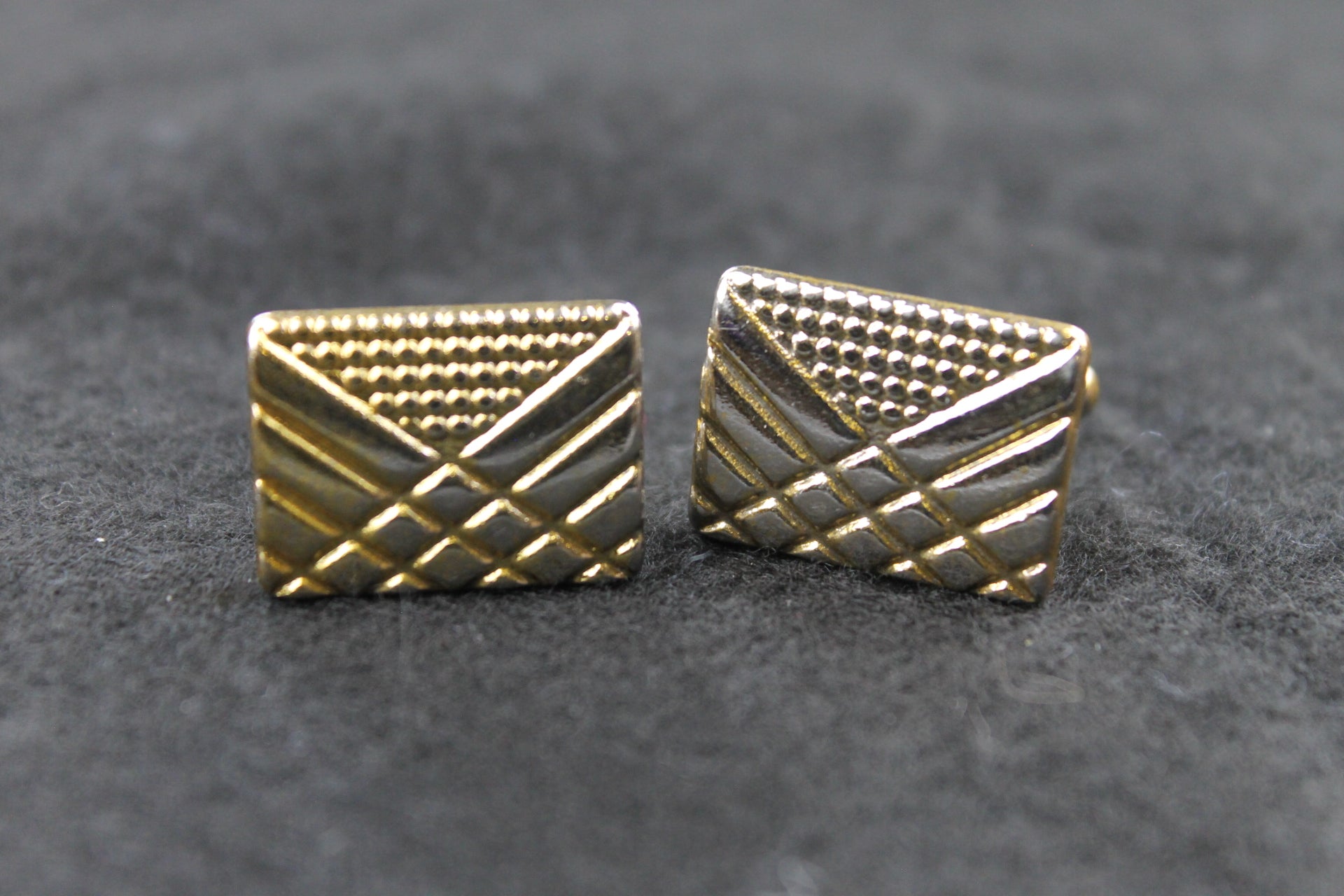 Vintage Oblong Gold Metal Woven Pattern Cufflinks