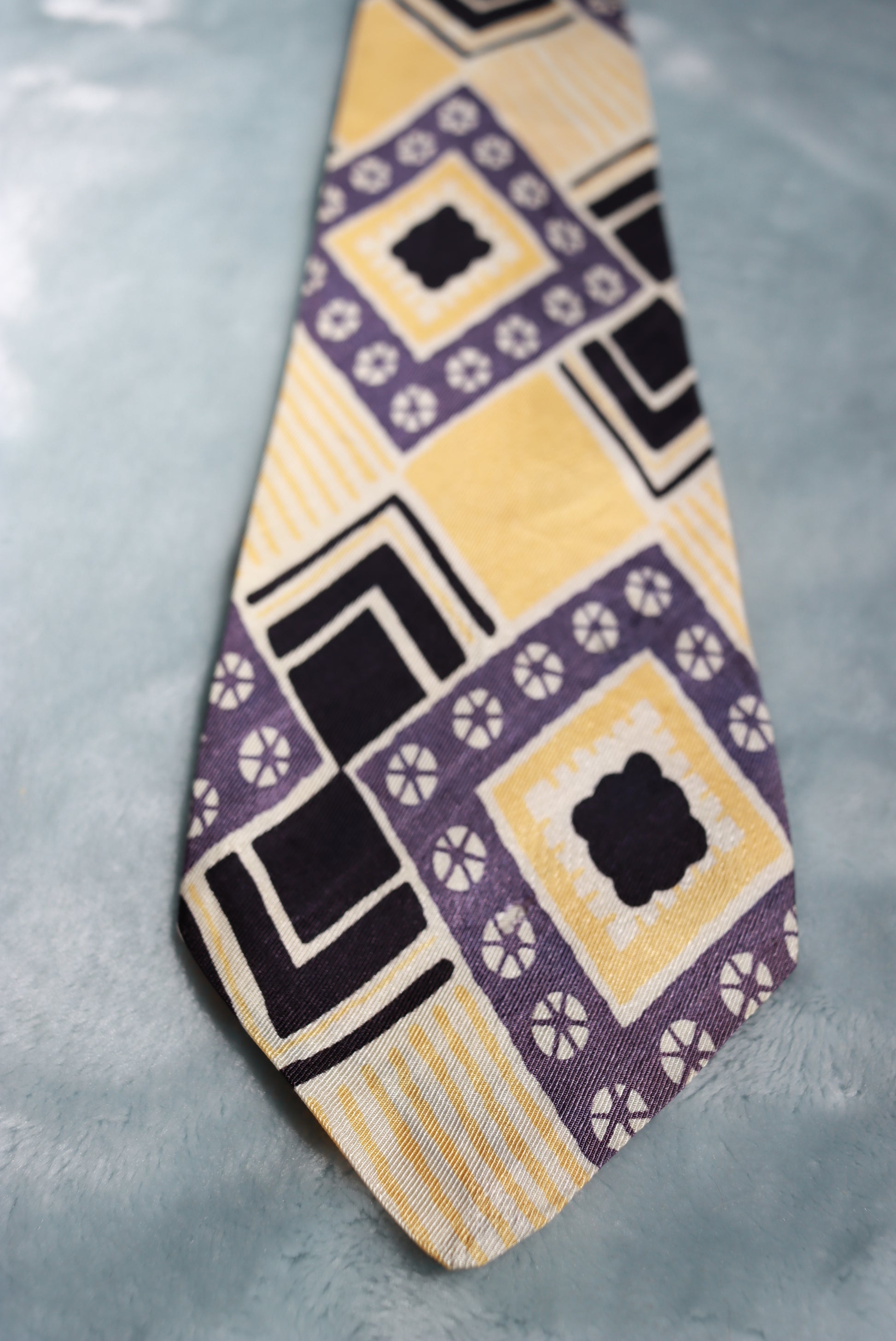 Pale Yellows Black and Grey Geometric Swing Tie 1940s/50s