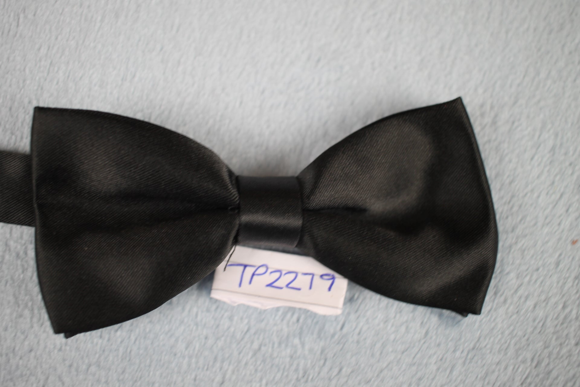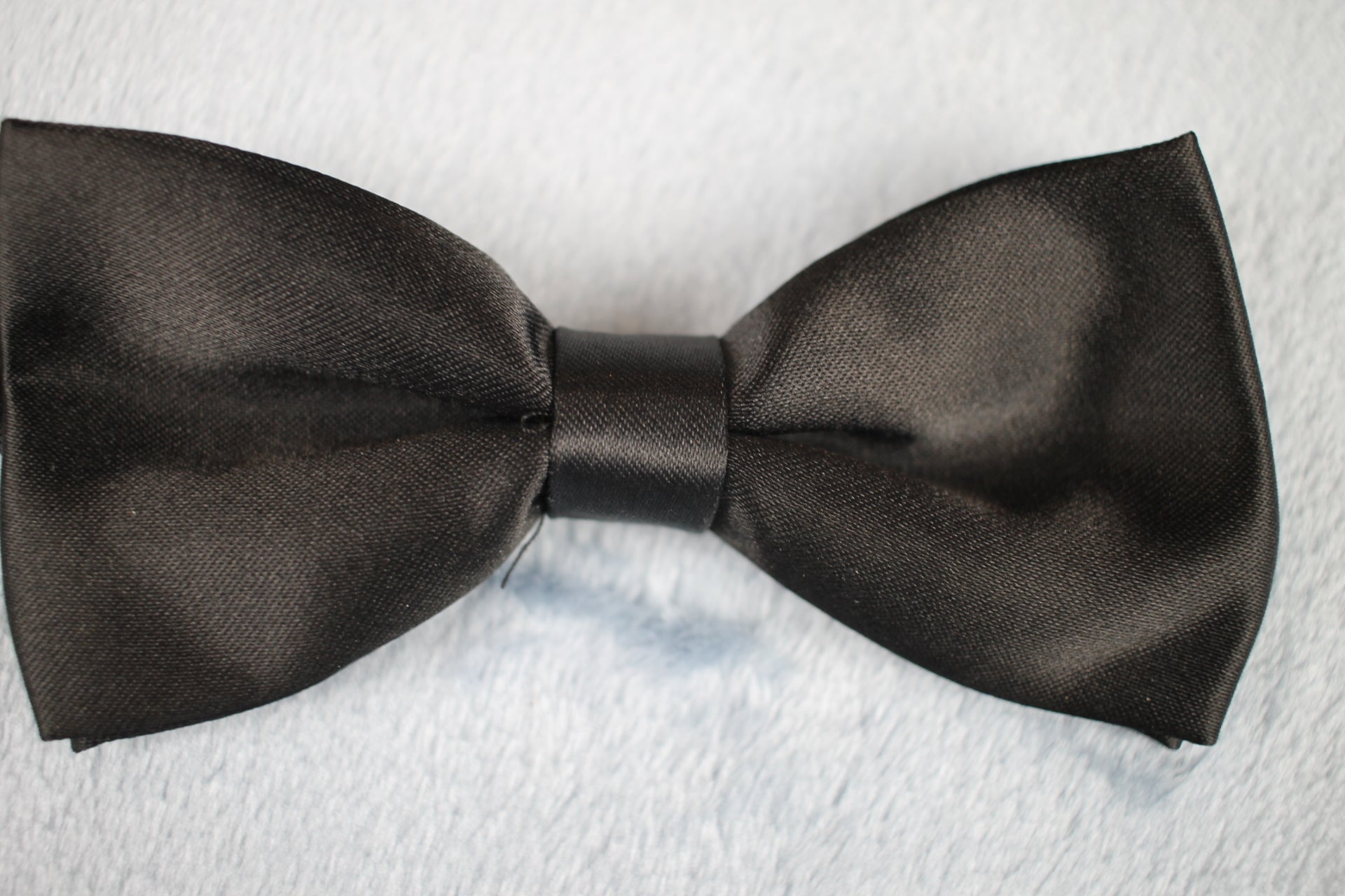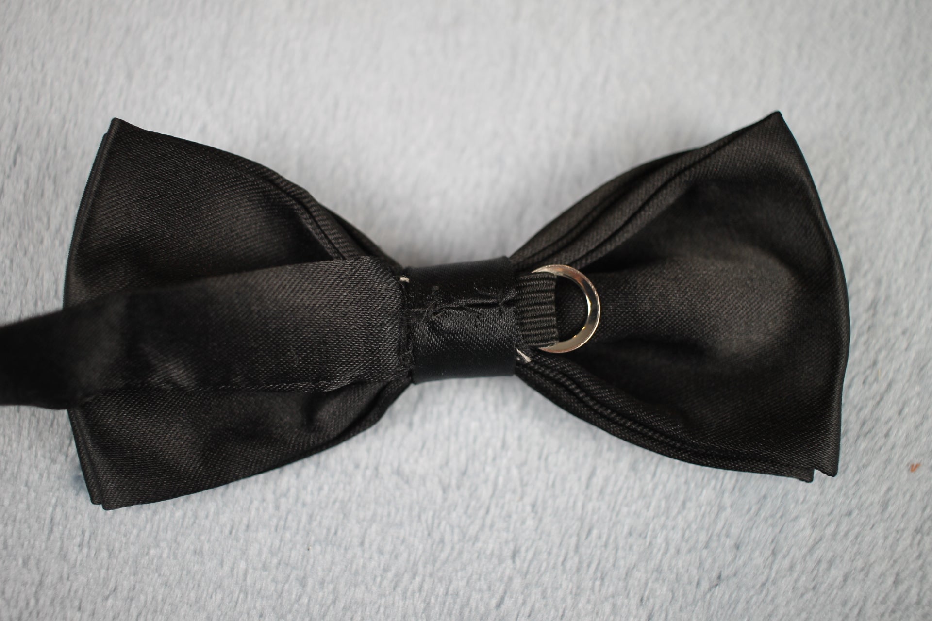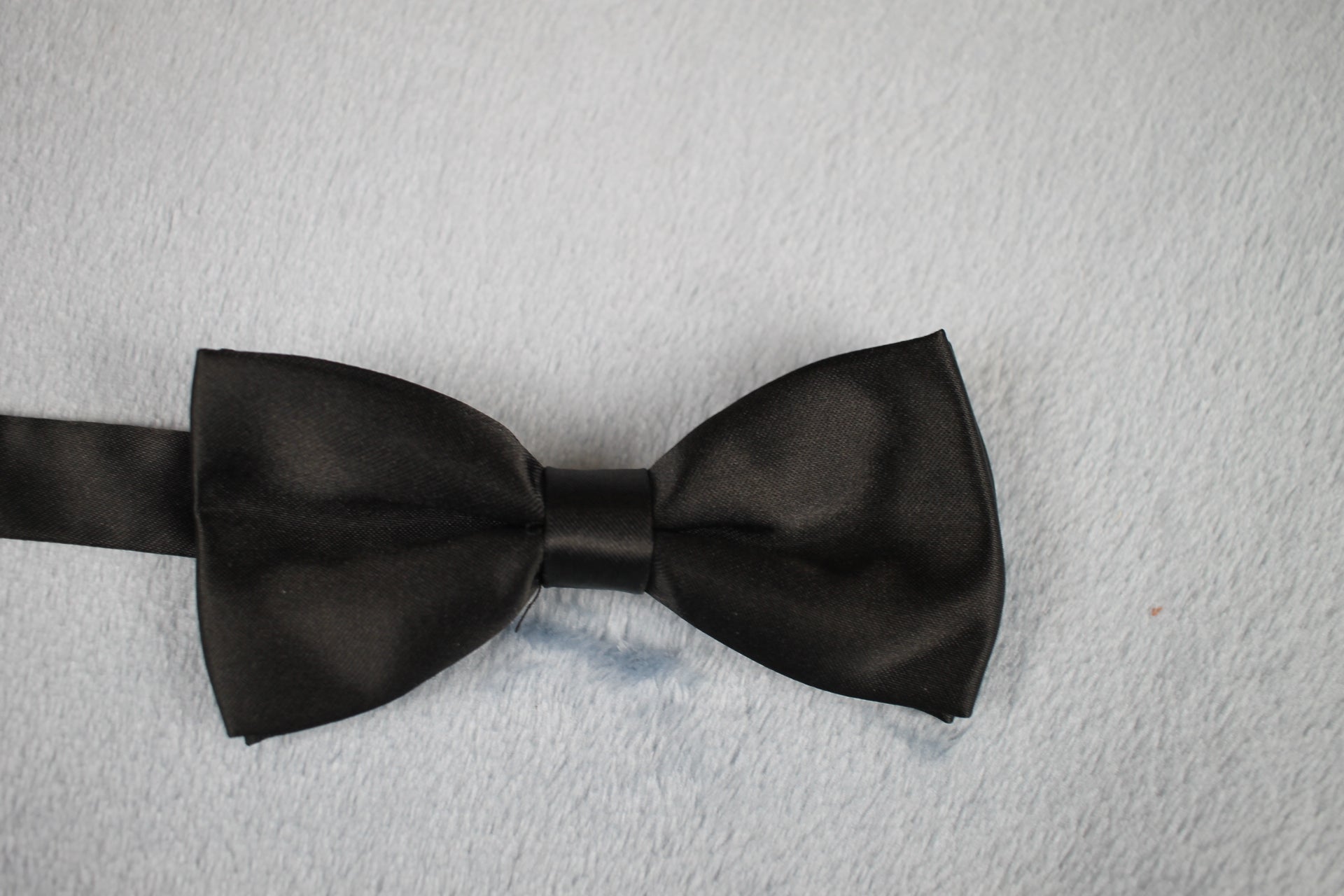 Vintage pre-tied black satin 1970s bow tie adjustable