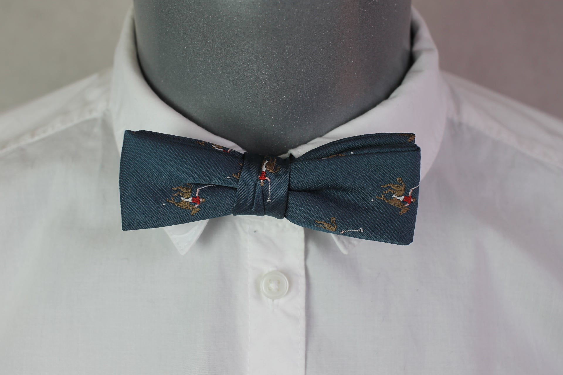Vintage pre-tied blue teal horse polo motifs bow tie adjustable