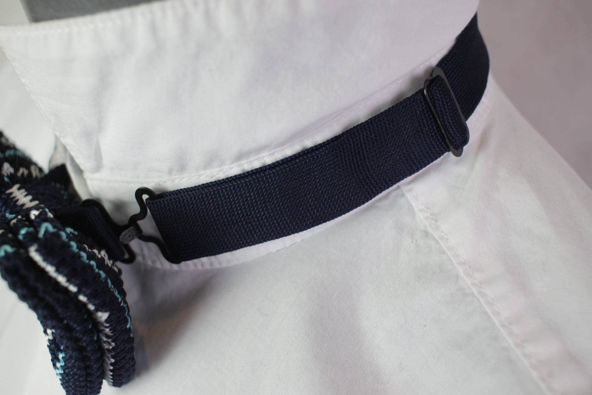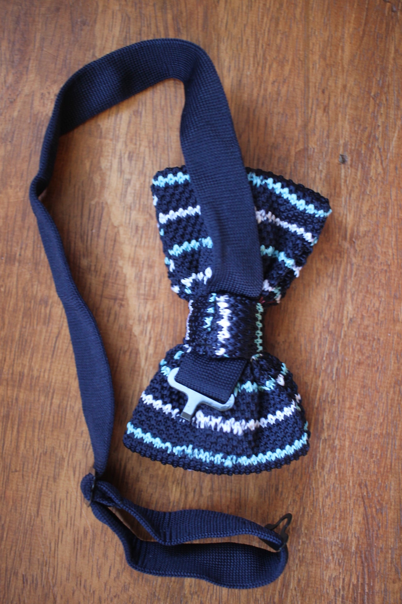 Vintage pre-tied blue white striped pattern bow tie adjustable
