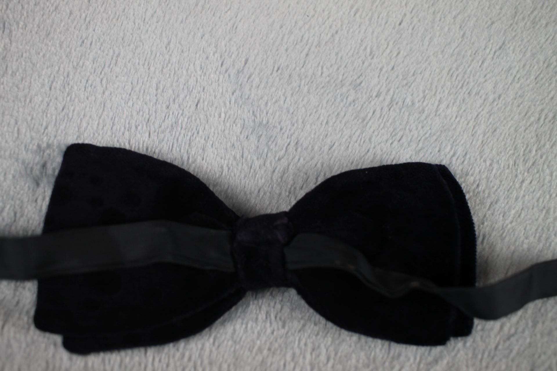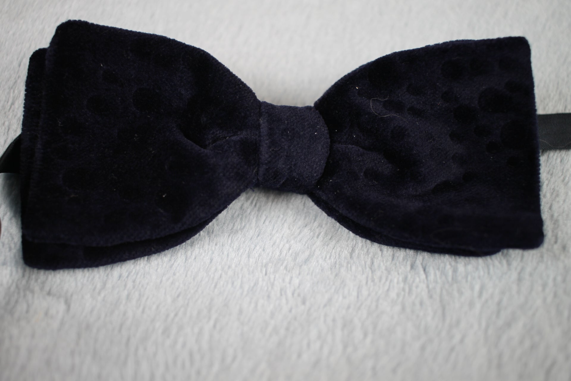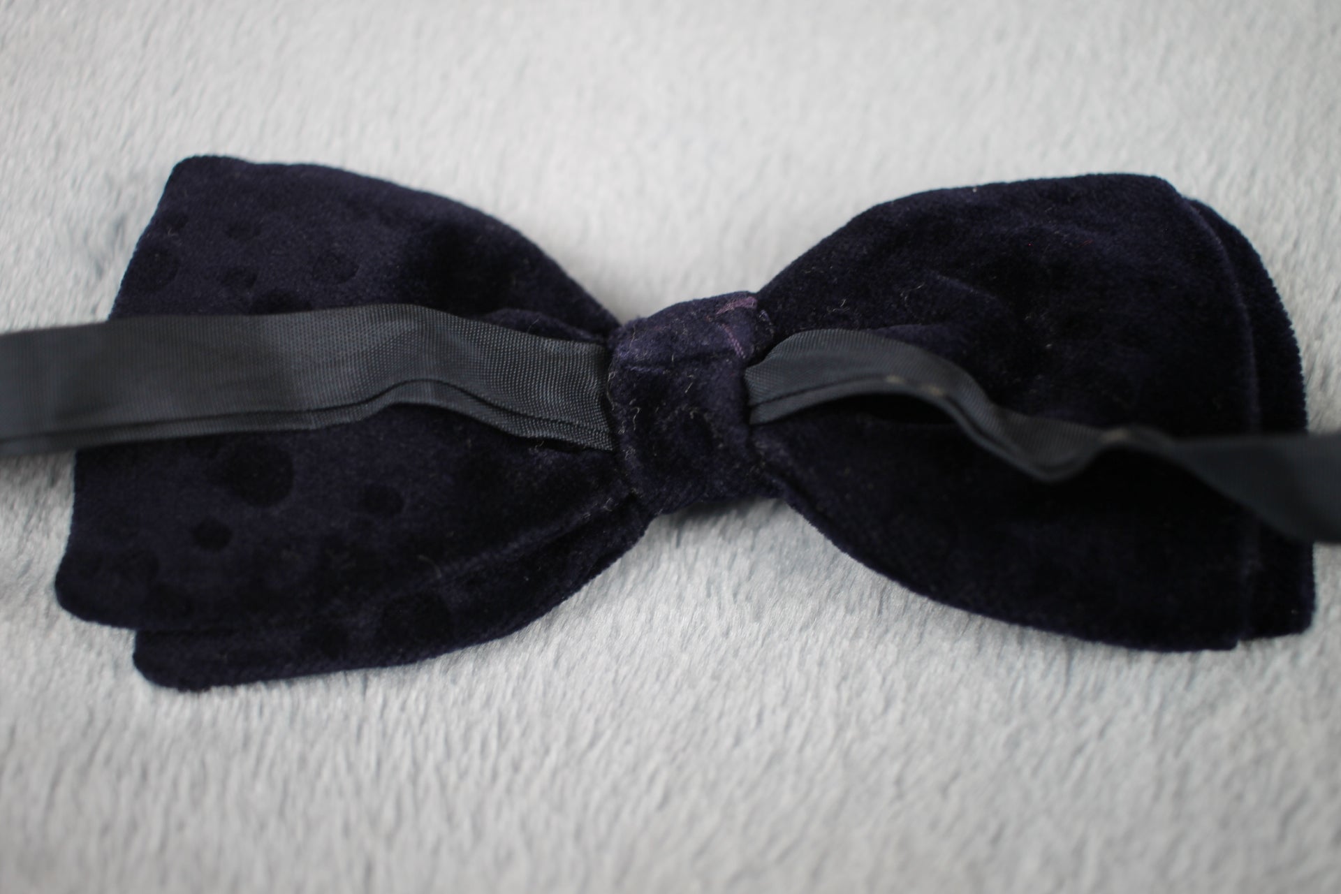 Vintage pre-tied classic blue velvet bow tie adjustable