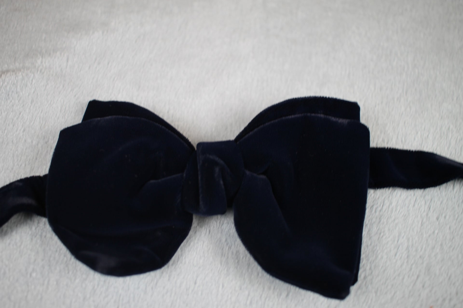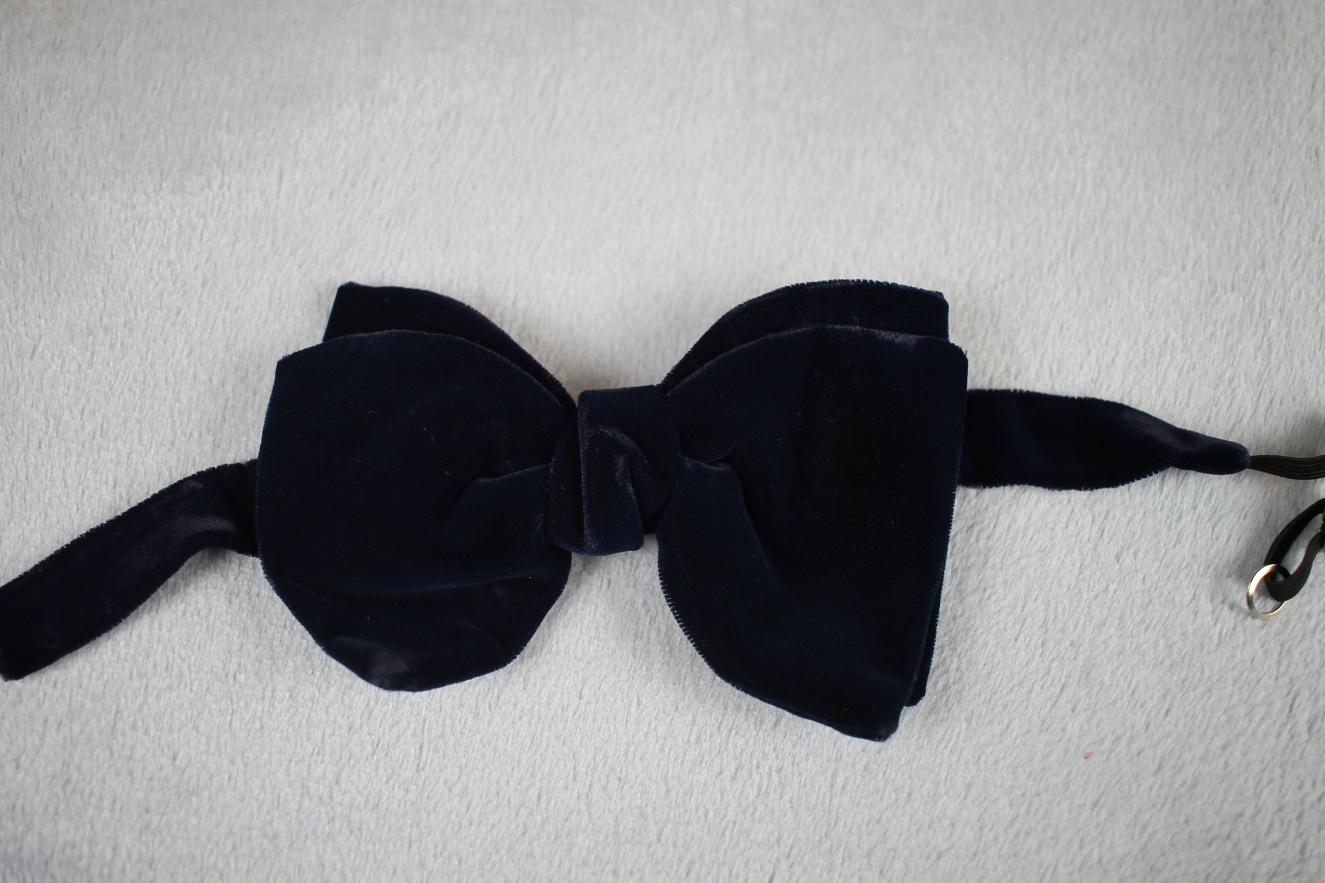 Vintage pre-tied classic dark blue velvet bow tie adjustable