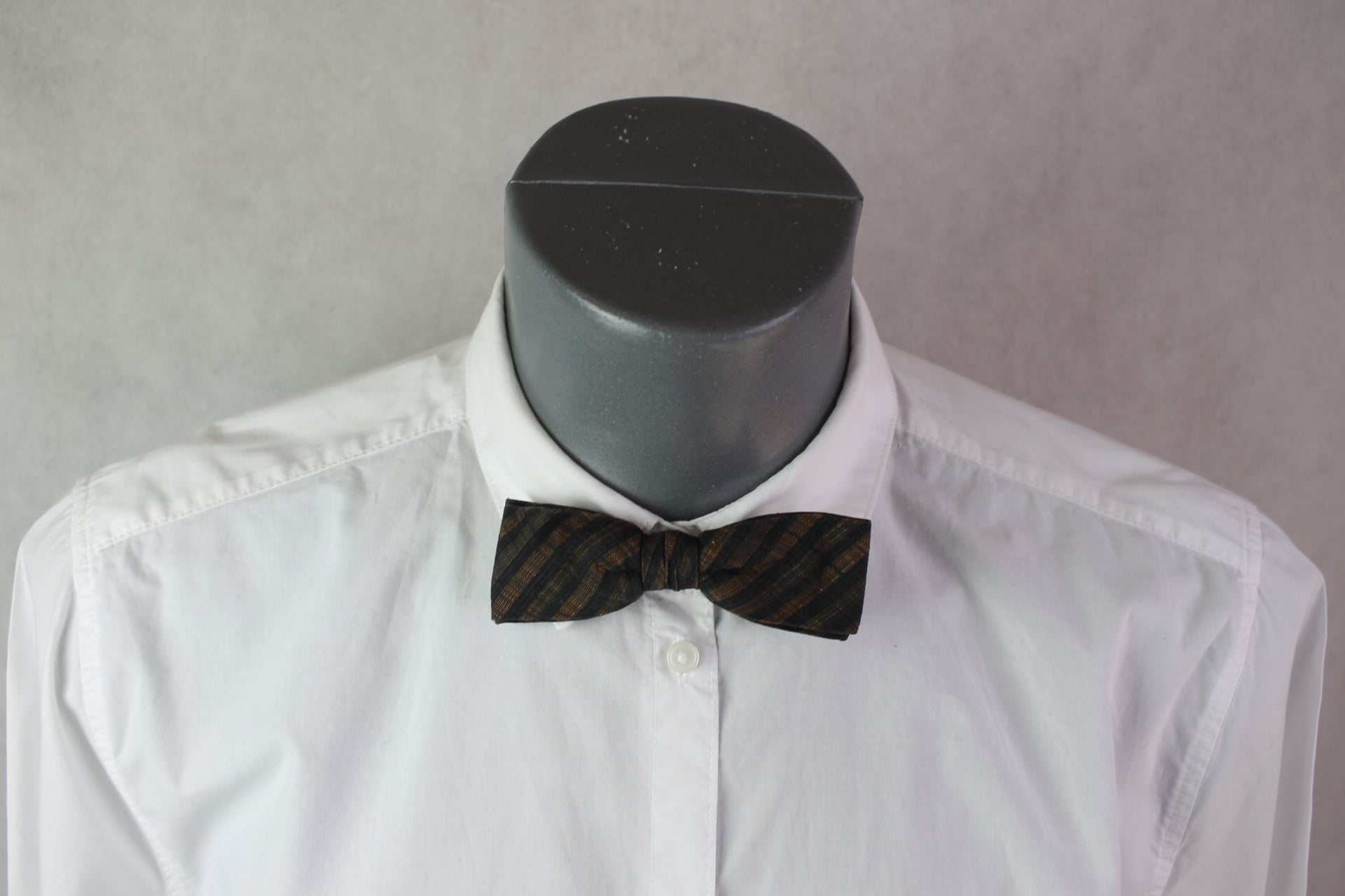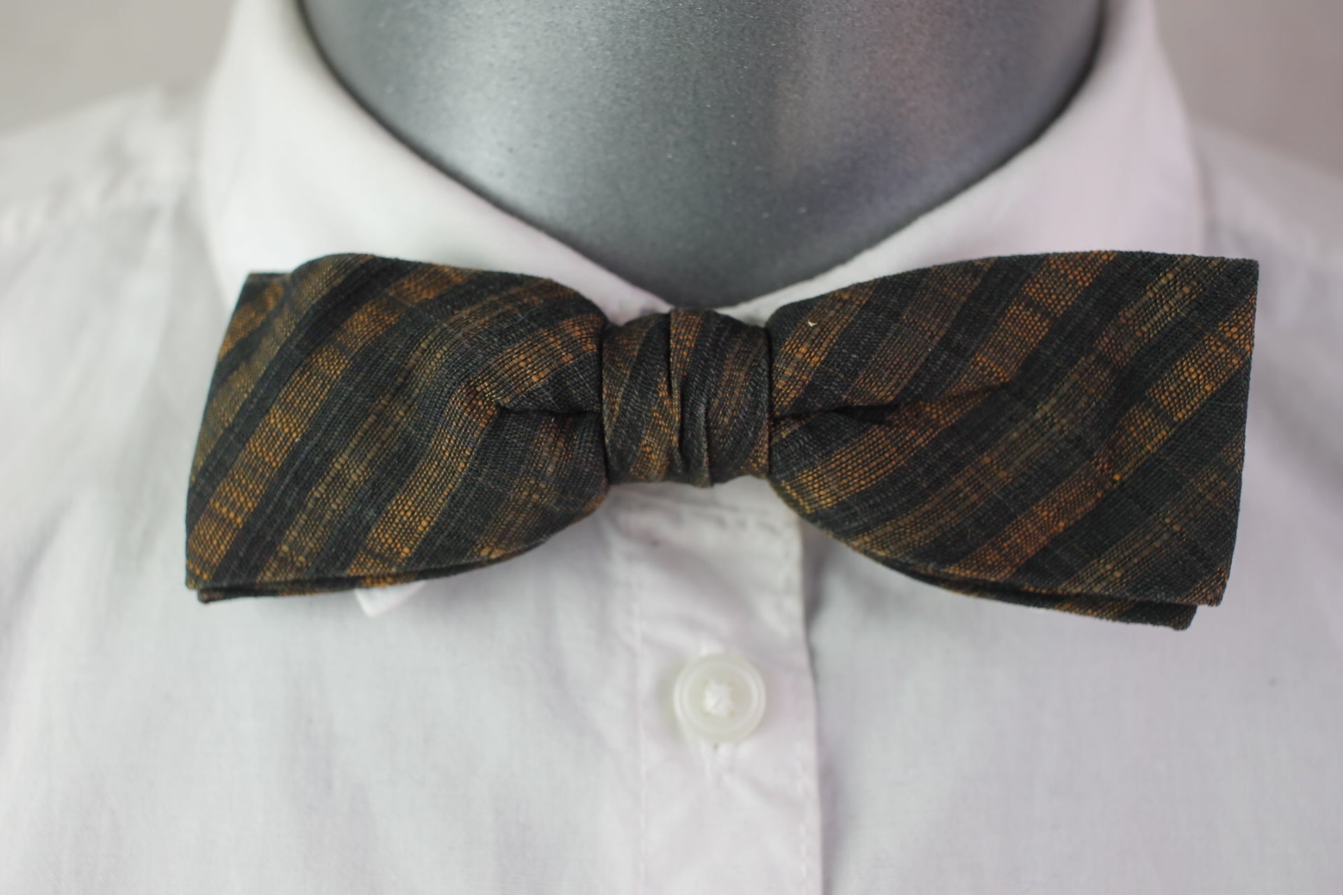 Vintage pre-tied clip on black bronze striped pattern bow tie