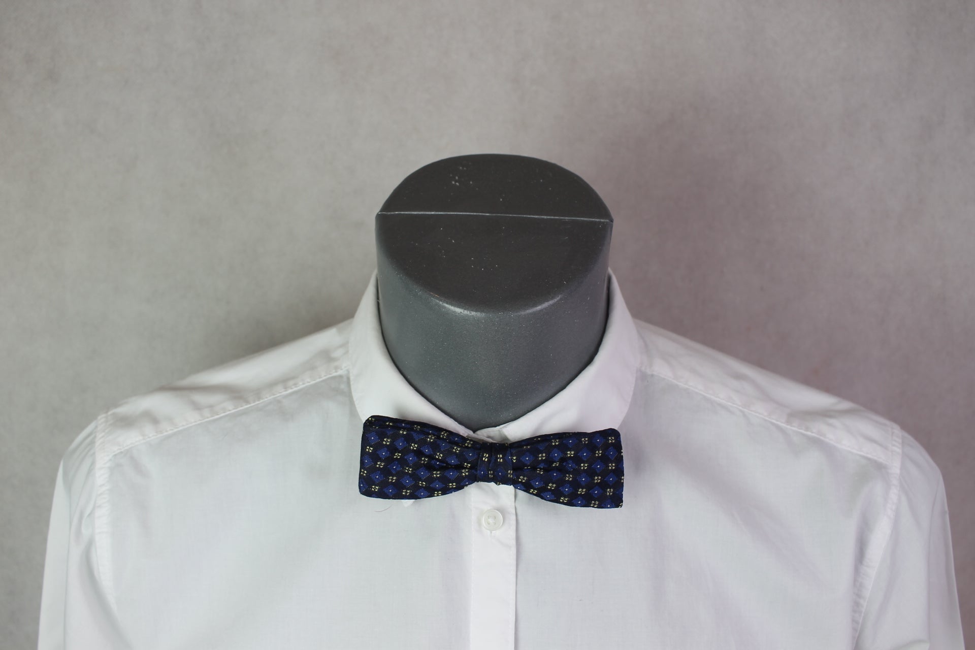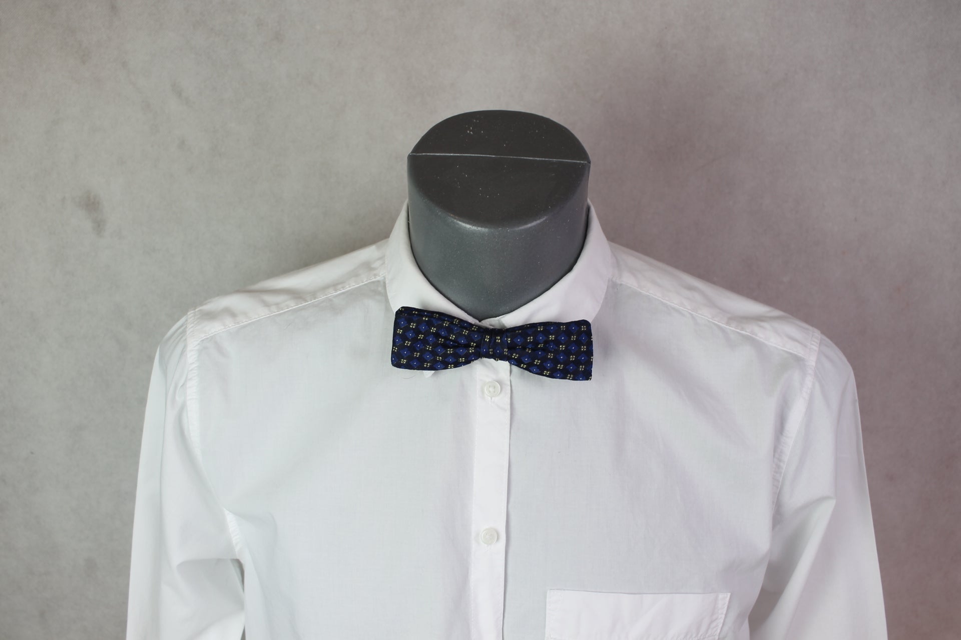 Vintage pre-tied clip on dark blue cream diamond pattern bow tie