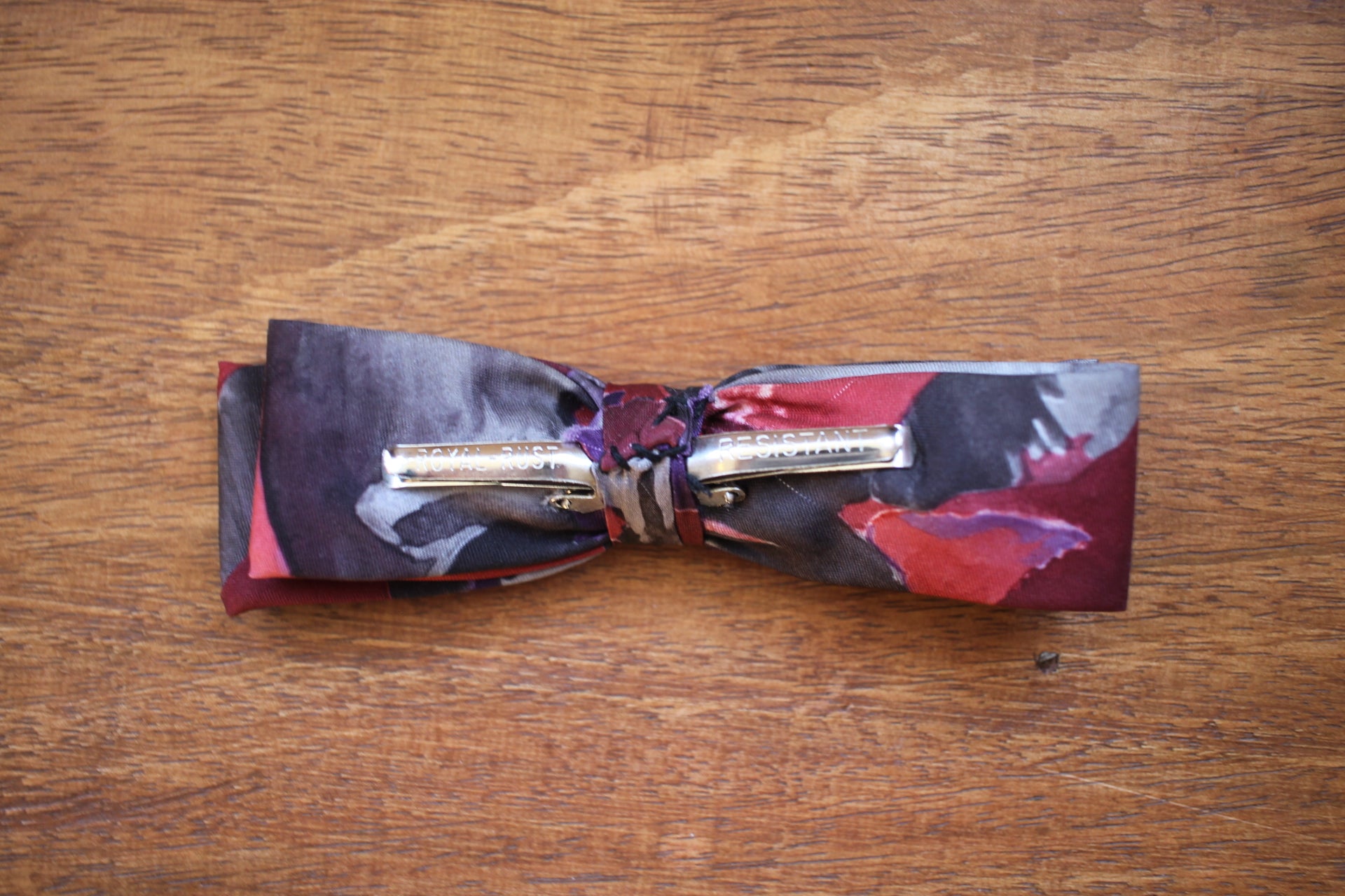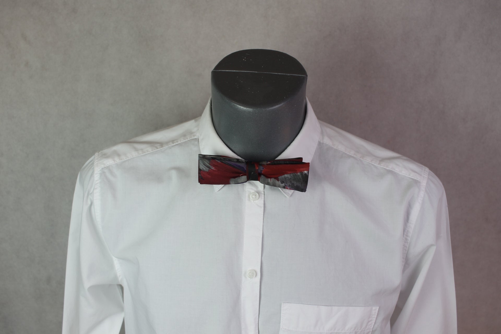 Vintage pre-tied clip on dark red grey pattern bow tie