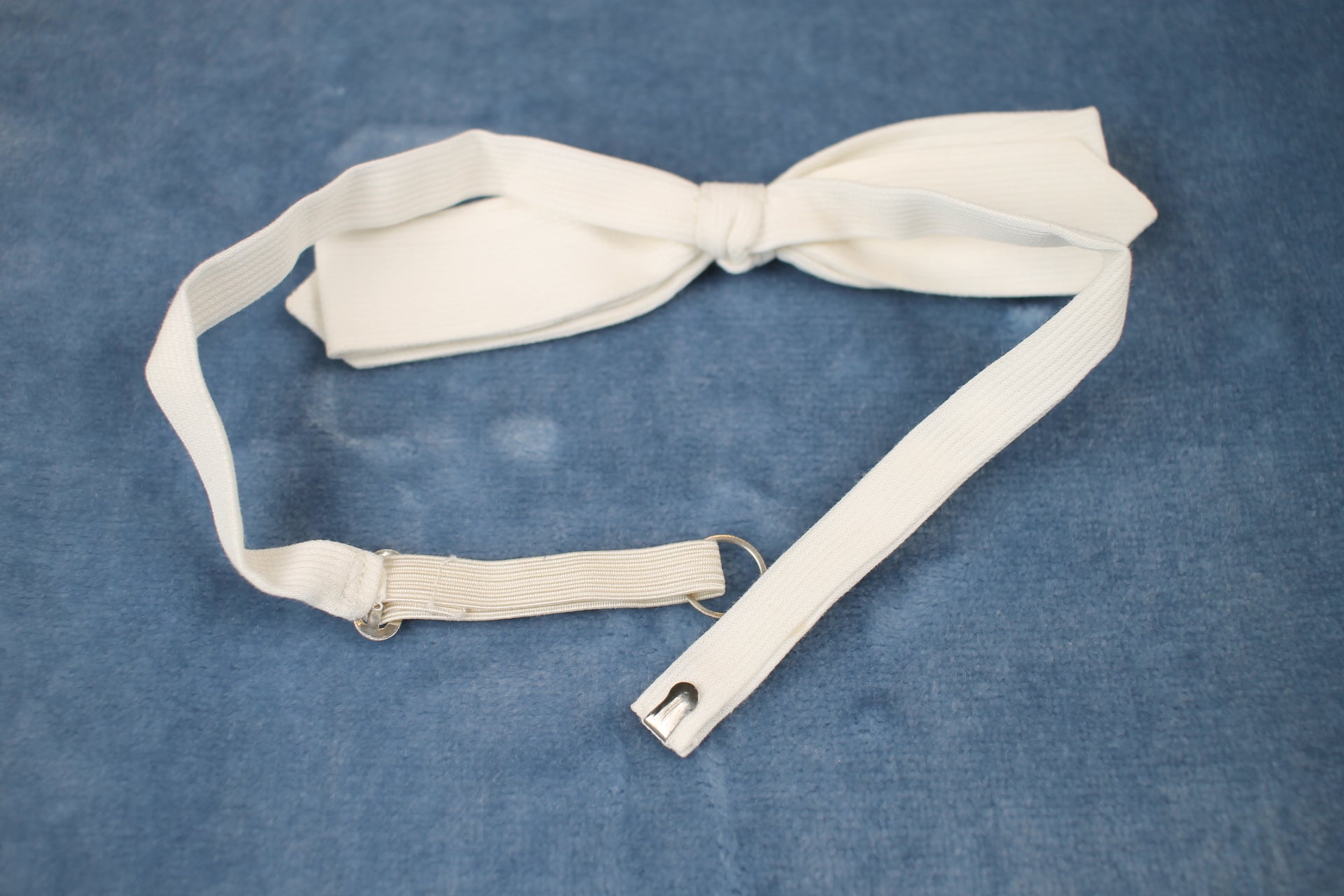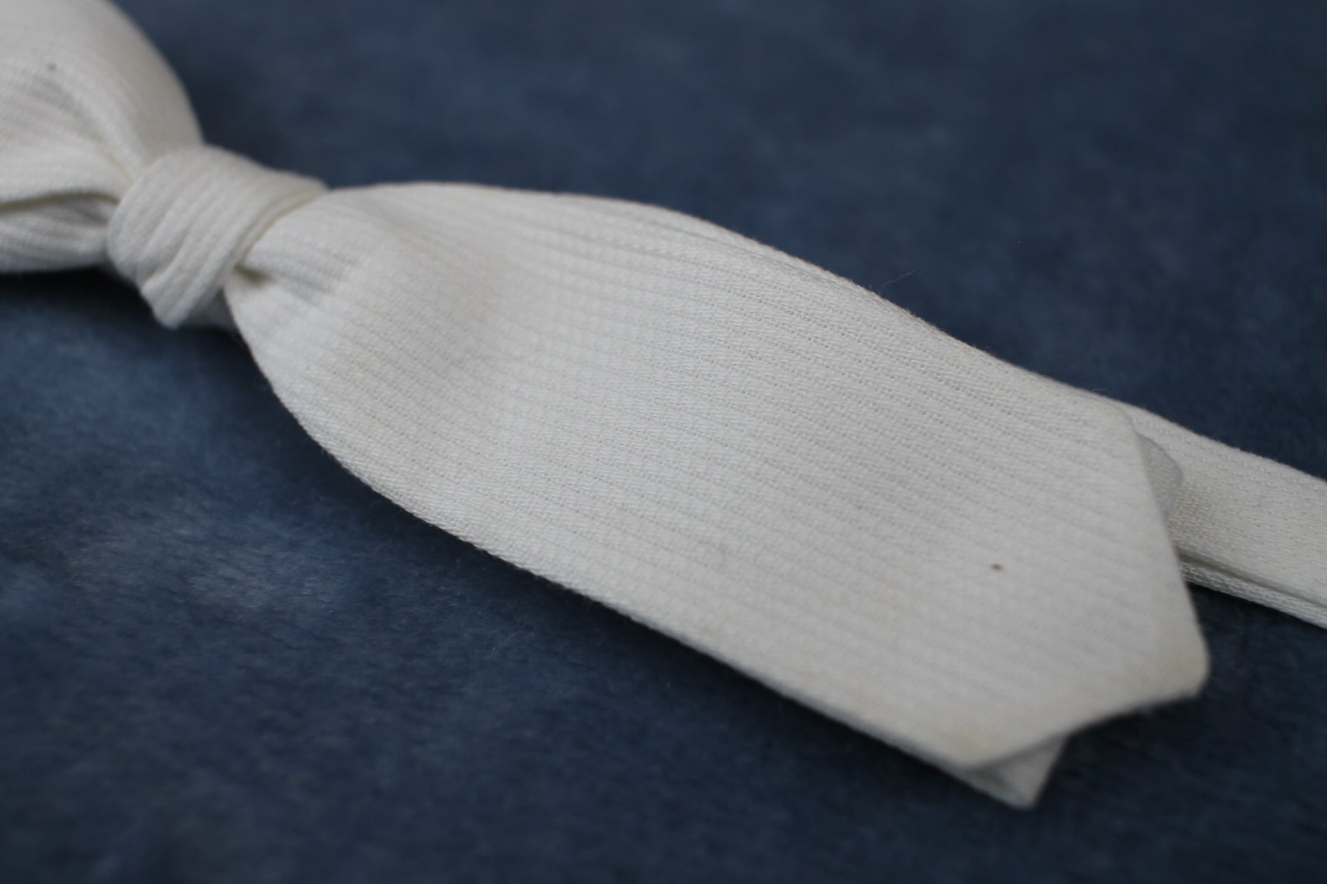Vintage pre-tied narrow end white textured pattern bow tie adjustable
