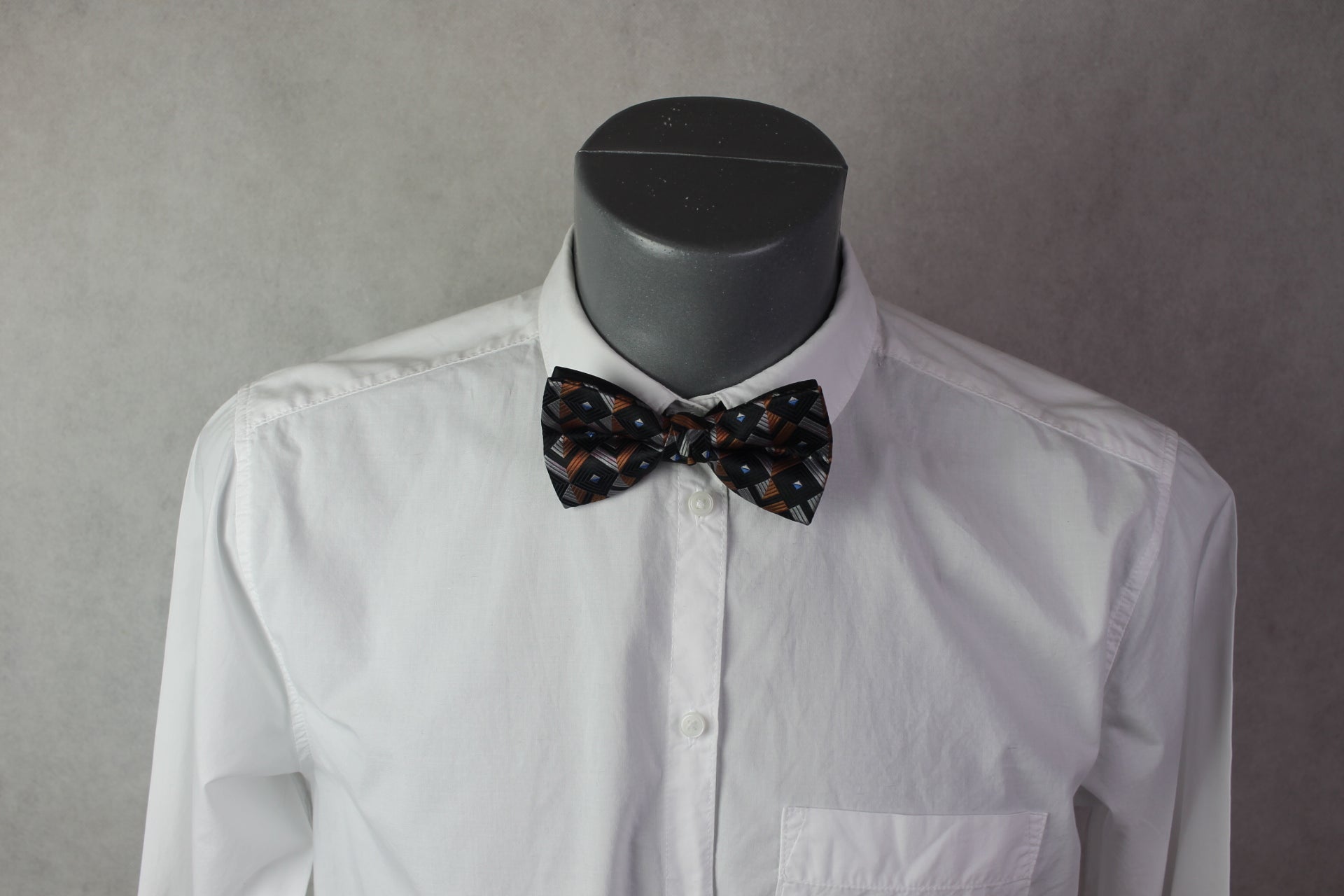 Vintage pre-tied orange black diamond pattern bow tie adjustable