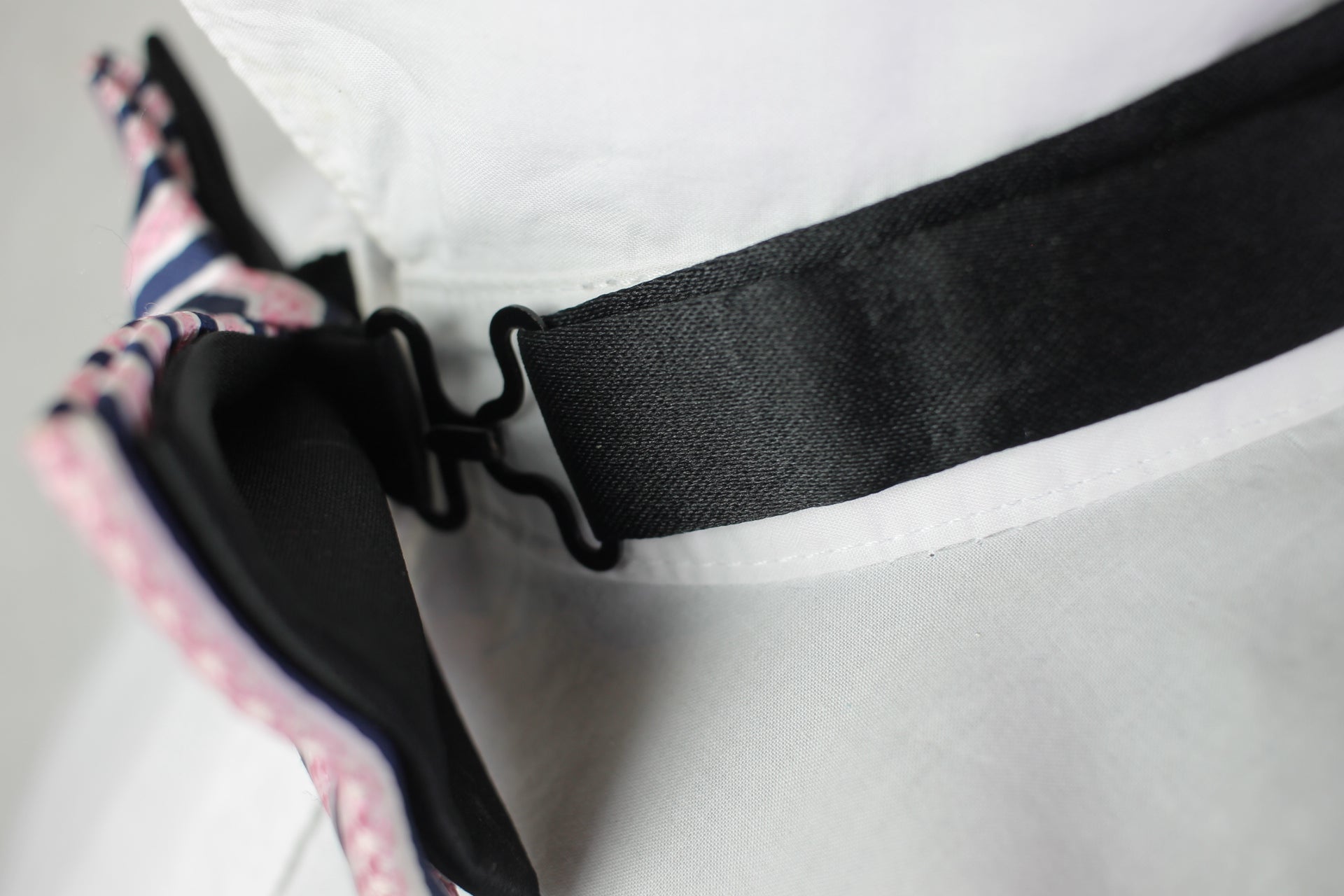 Vintage pre-tied pink black striped pattern bow tie adjustable