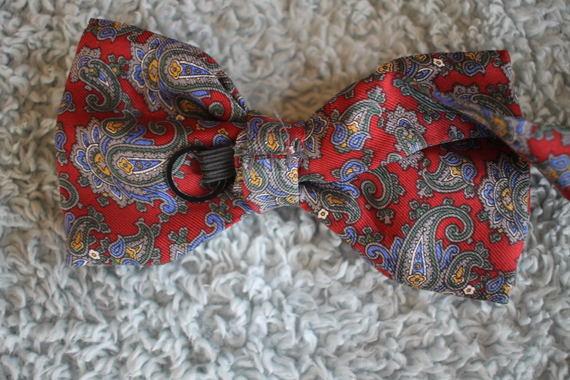 Vintage pre-tied red blue green paisley pattern bow tie adjustable