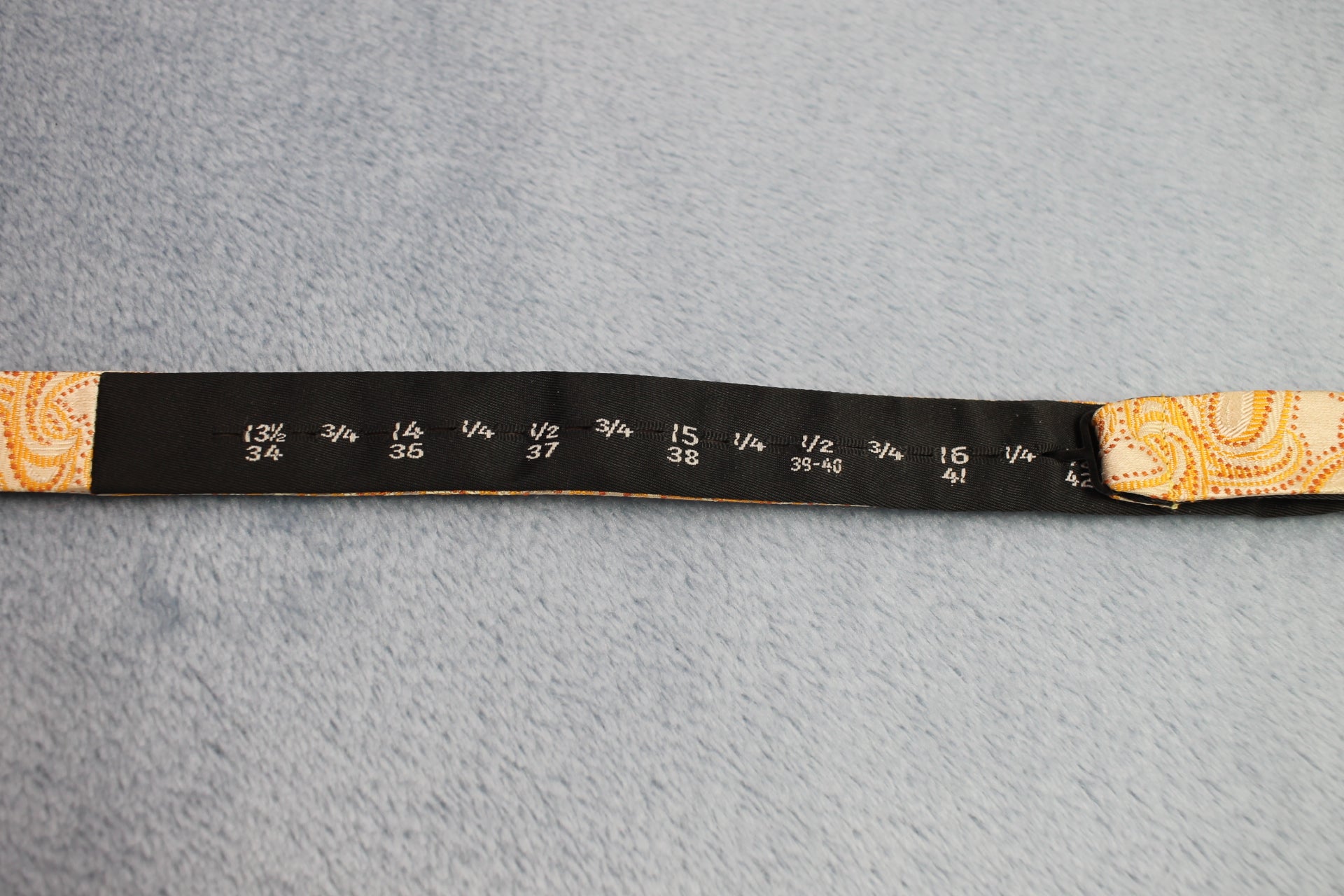Vintage Pronto Uomo Couture 100% silk self tie thistle end orange paisley bow tie adjustable