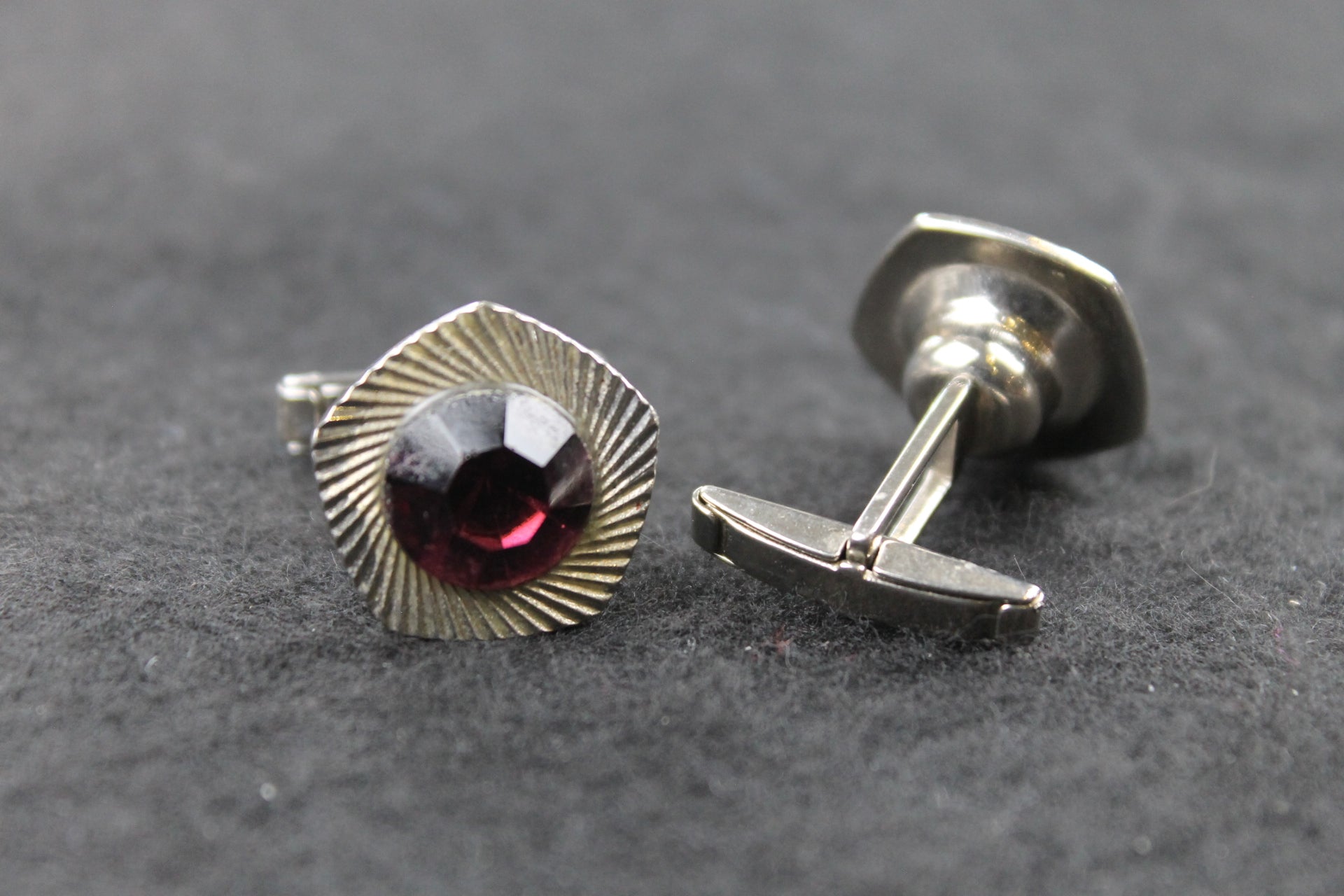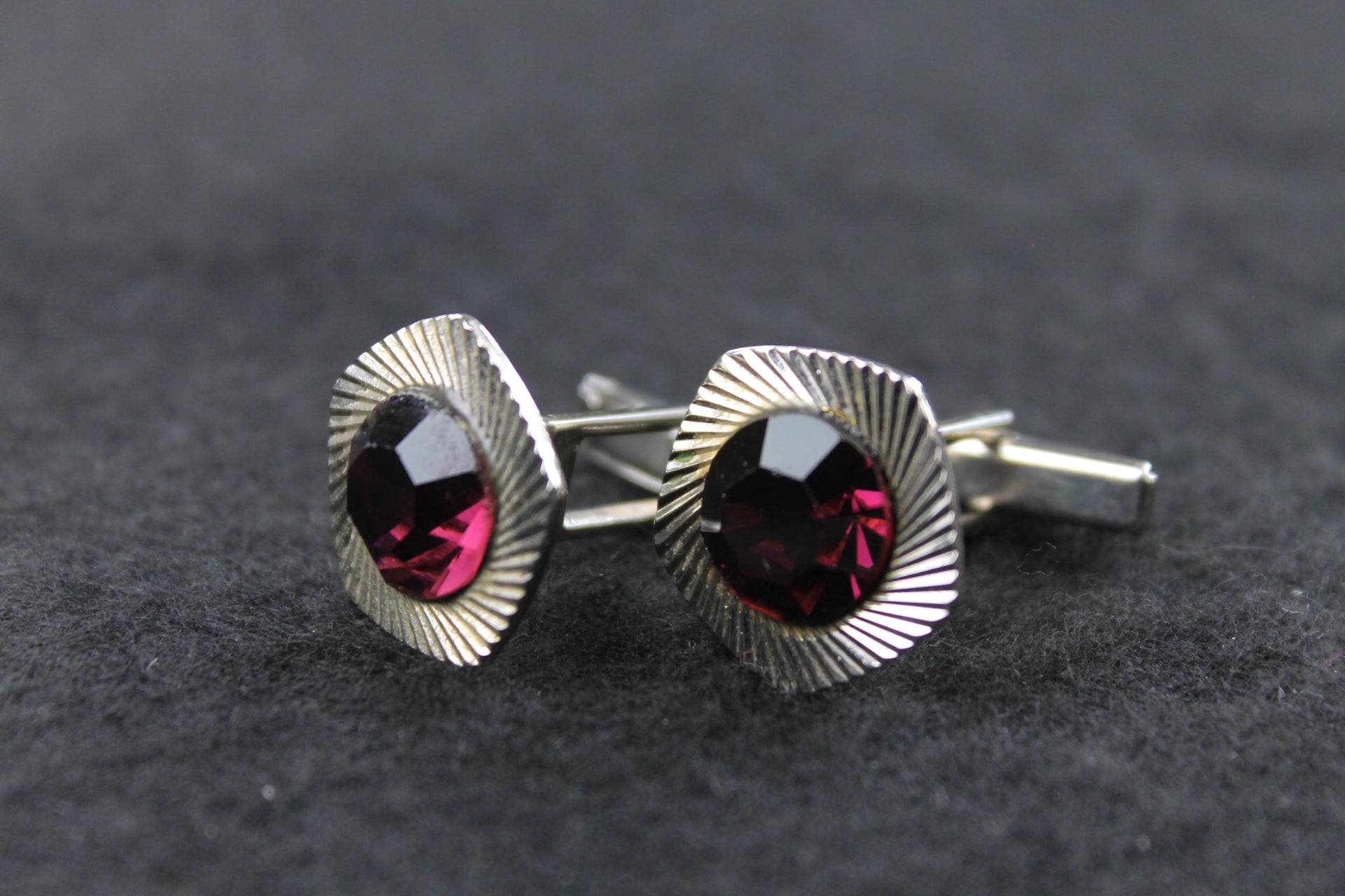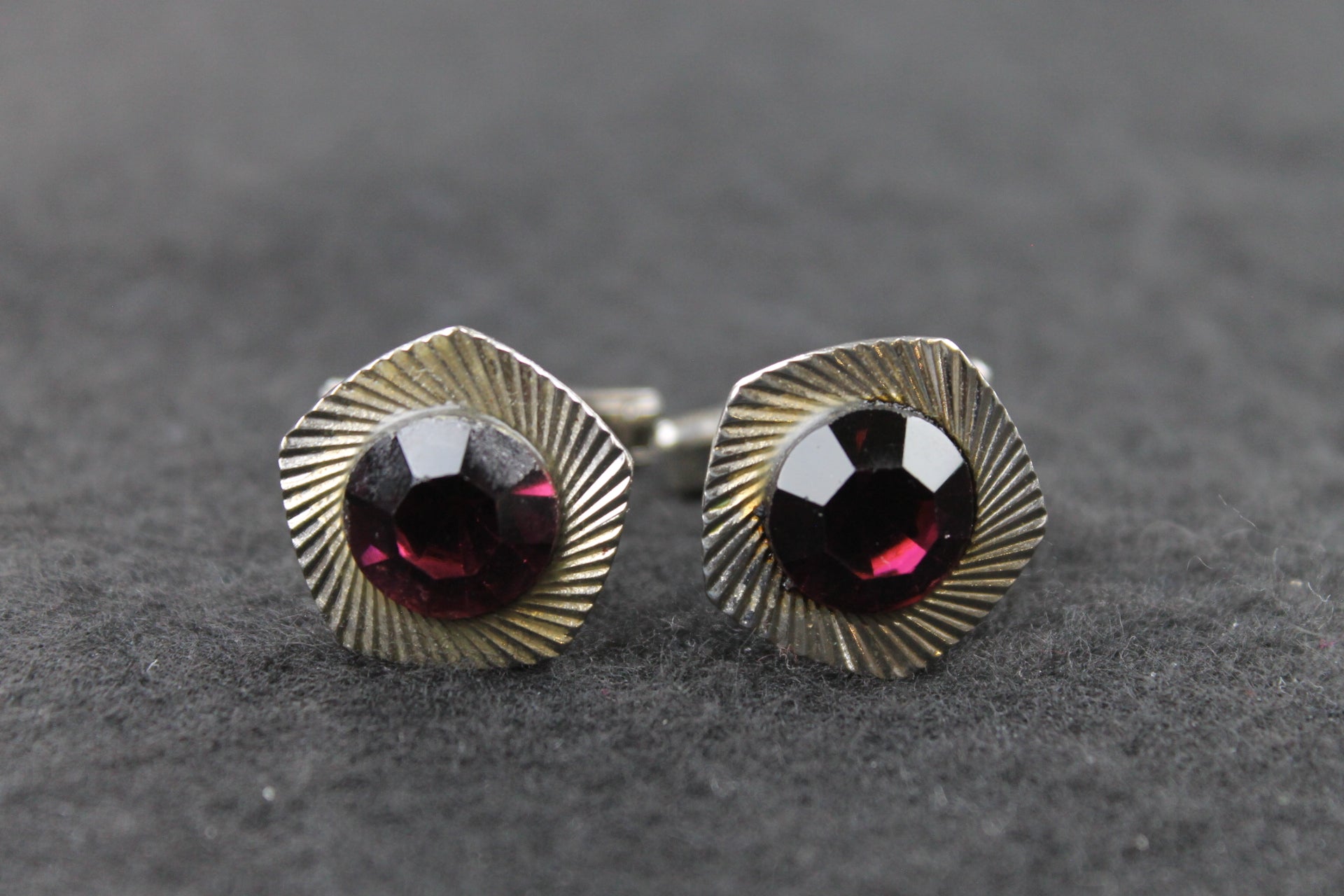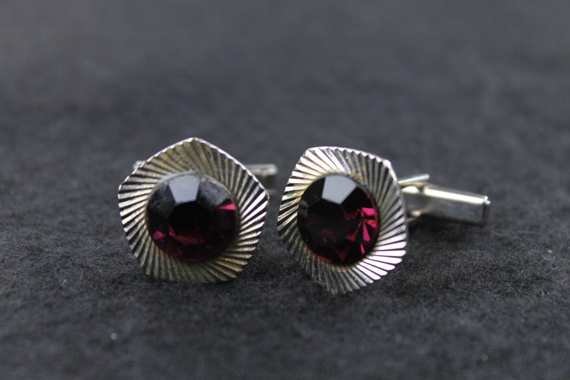 Vintage Purple Lucite Faceted Gem Cufflinks