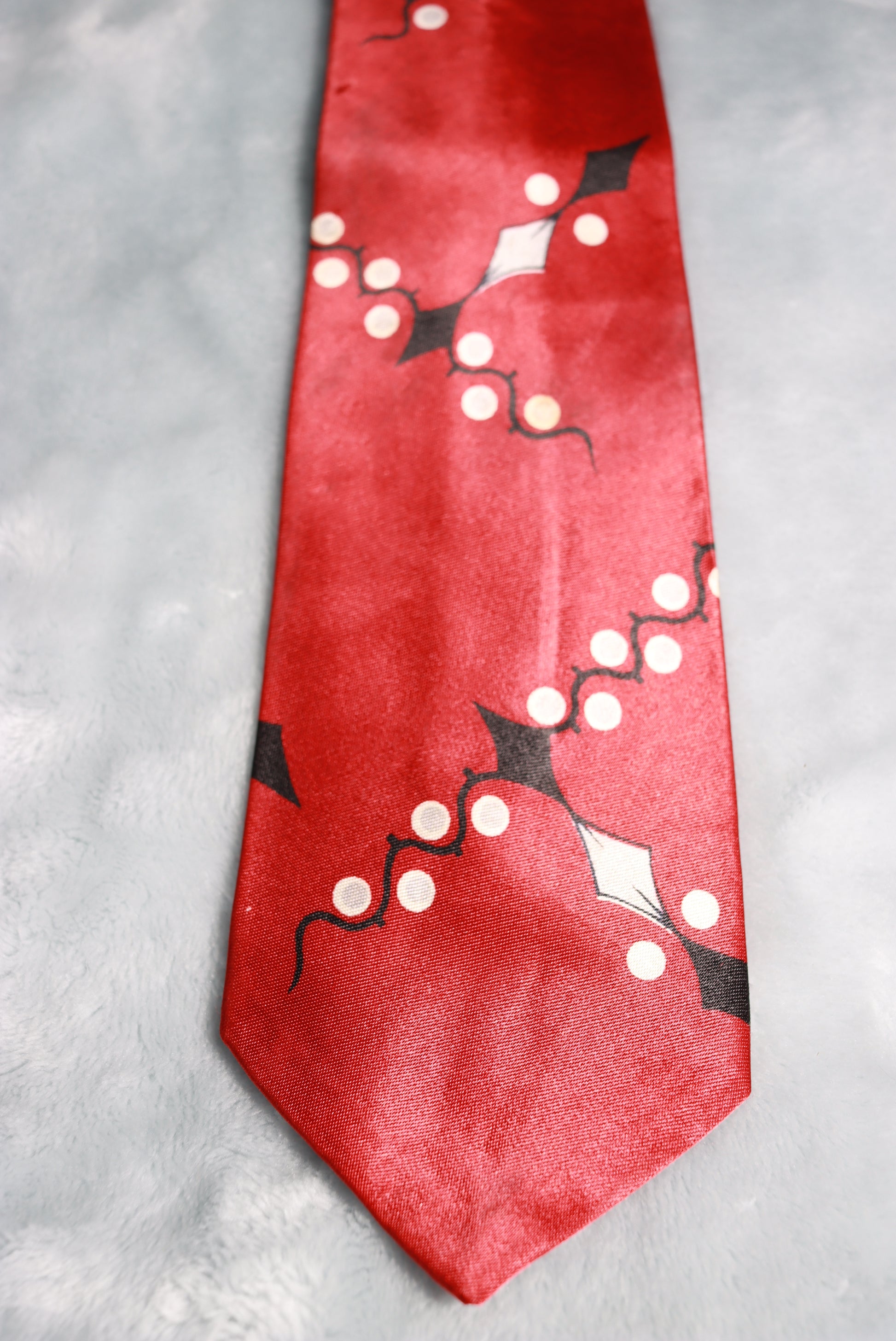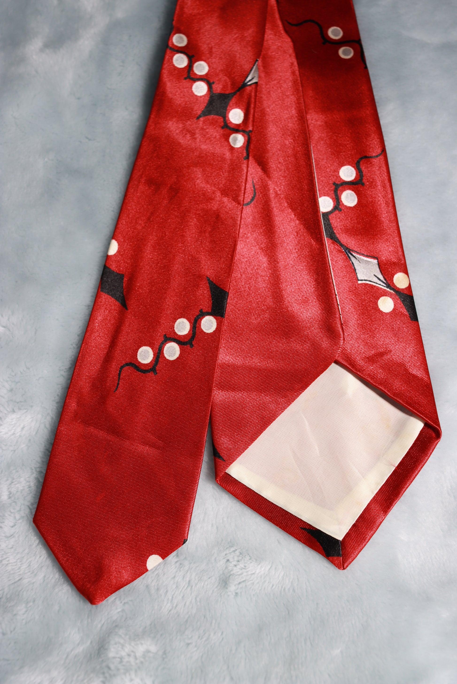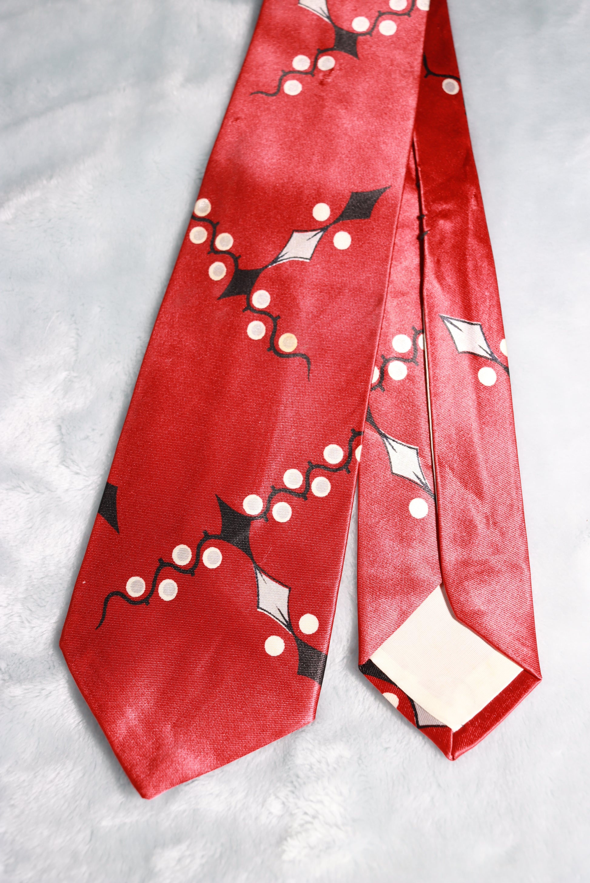 Vintage Red Black White Grey Satin Tie 1940s/50s