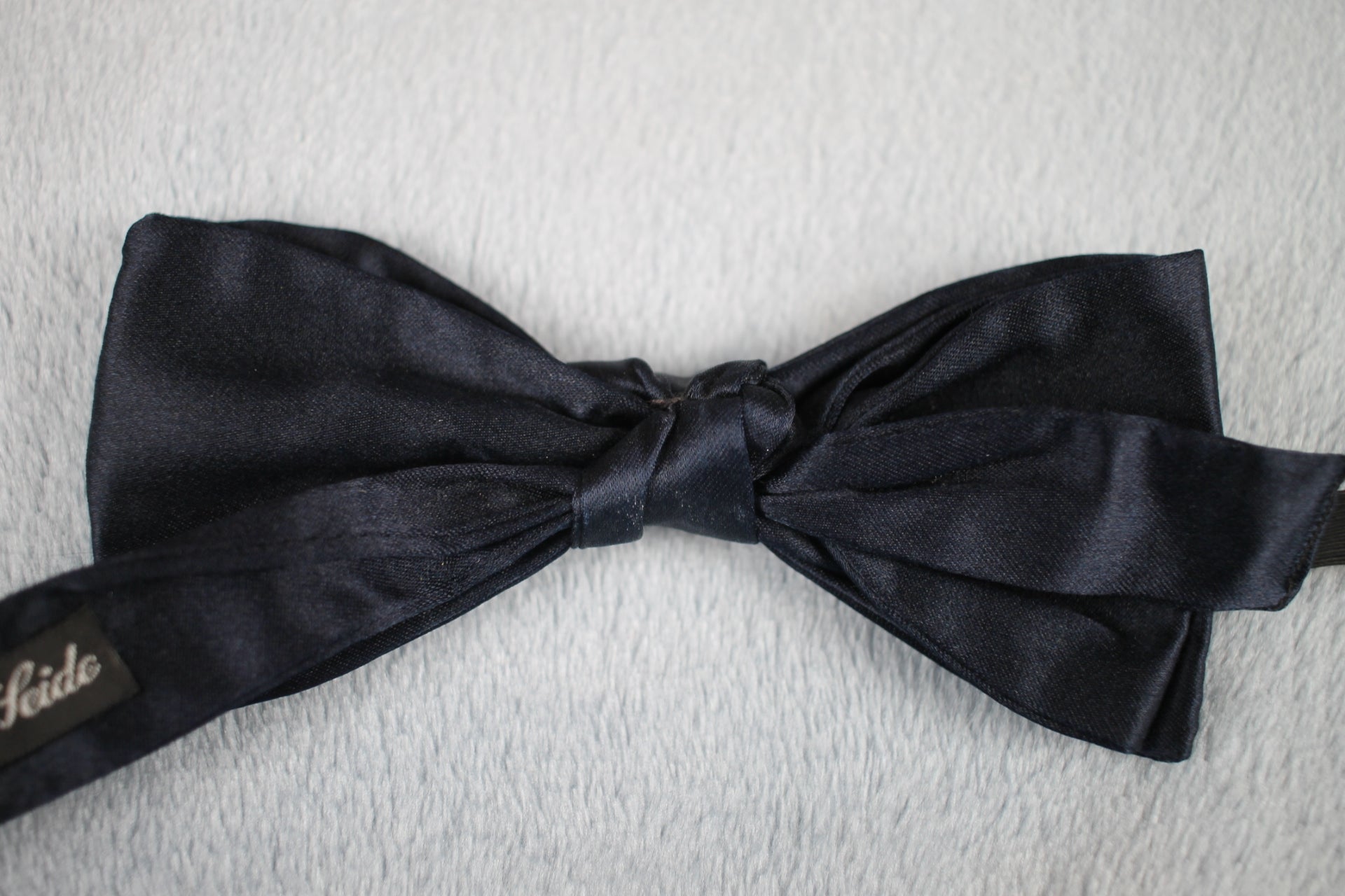 Vintage Reine Seide pre-tied dark blue satin 1970s bow tie adjustable