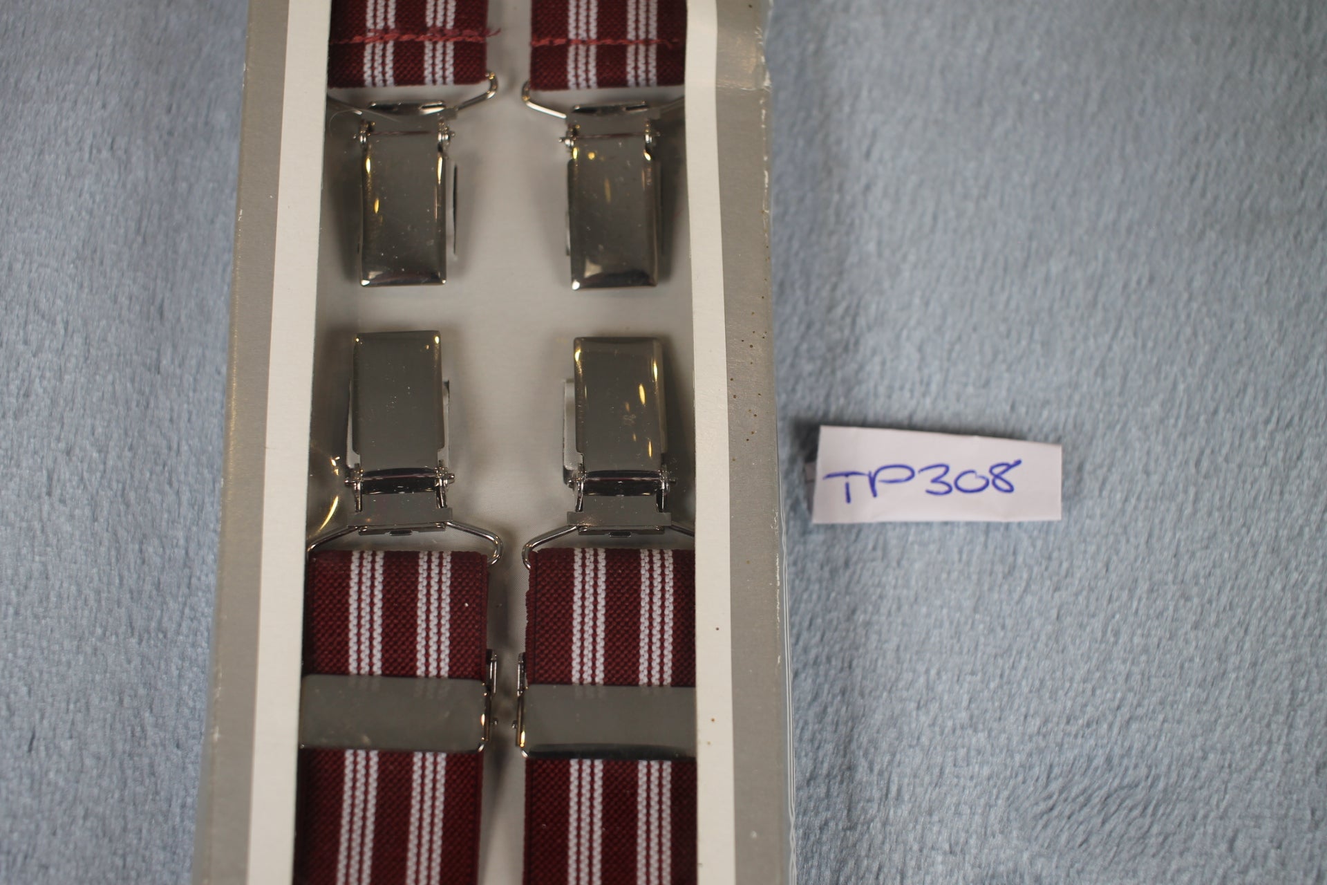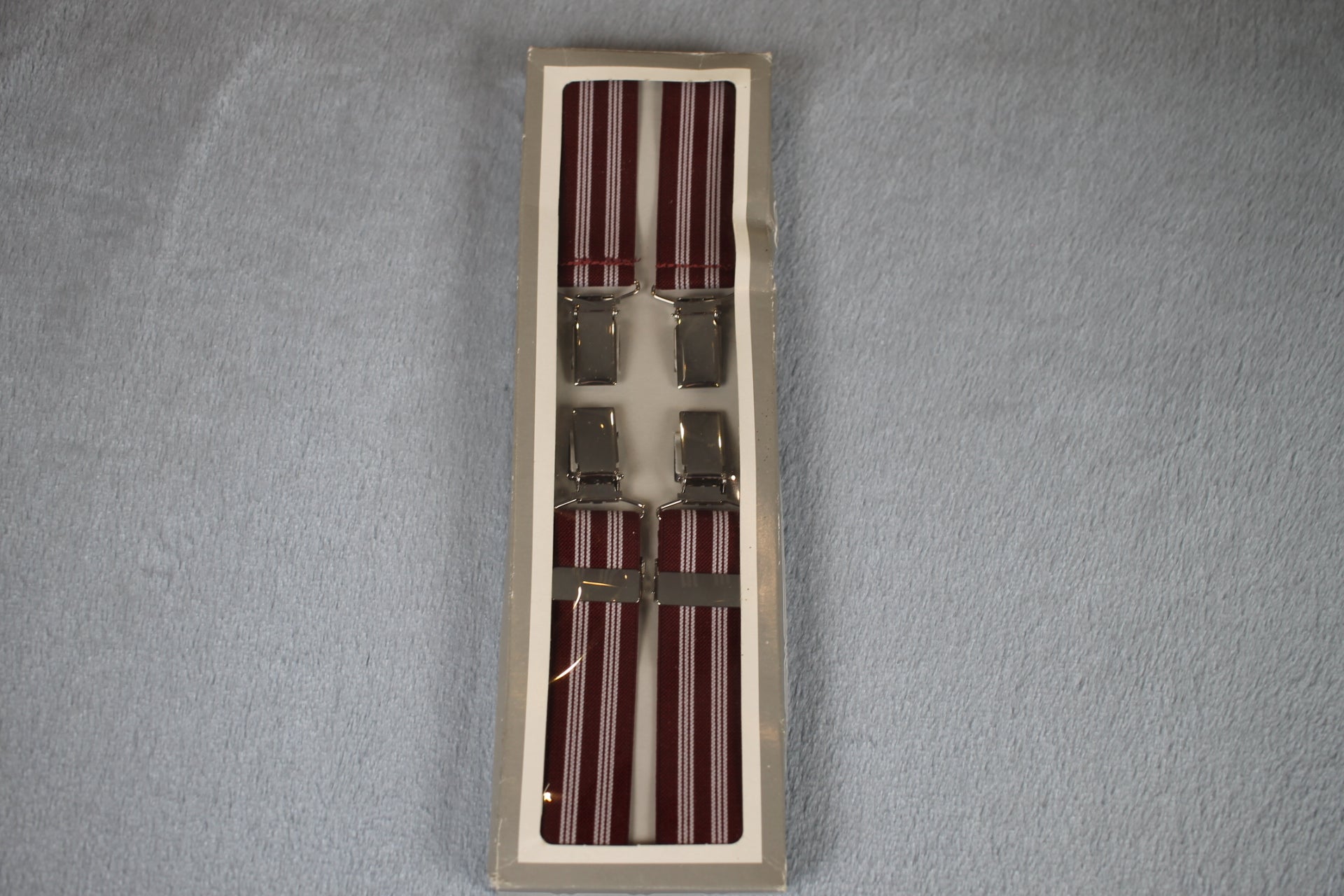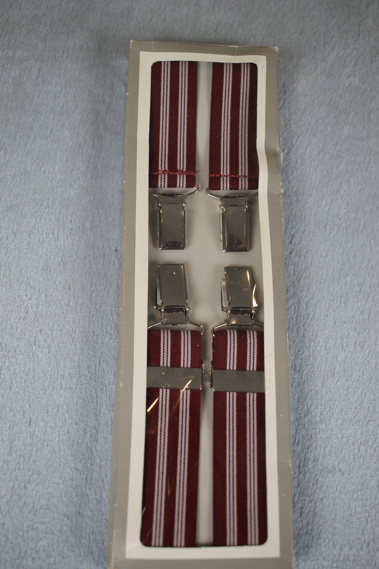 Vintage retro Lees silver clip on elasticated burgundy striped braces 80s Wall Street
