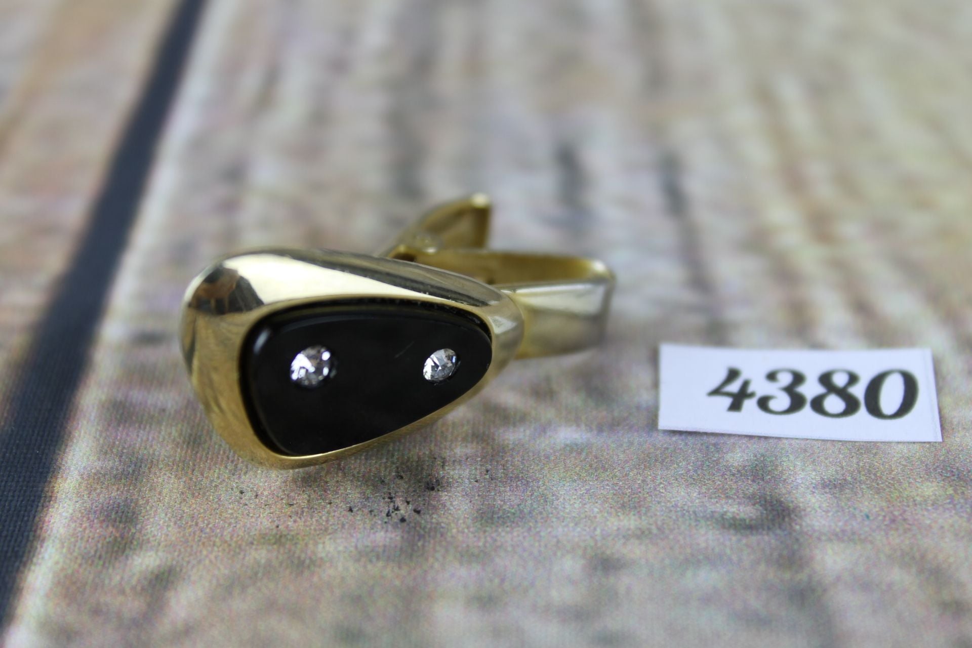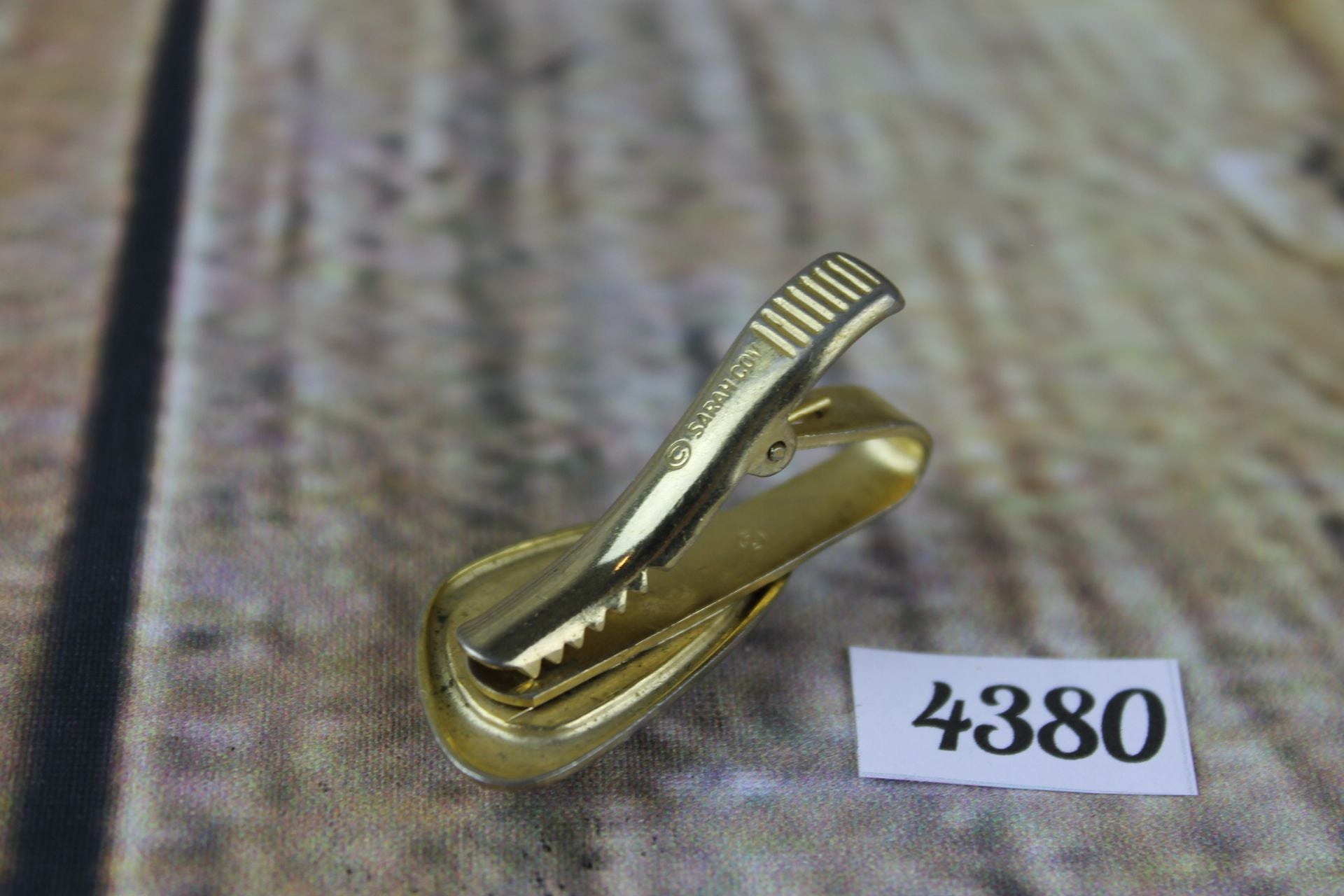Vintage Sarah Coventry gold metal diamante black glass tie clip