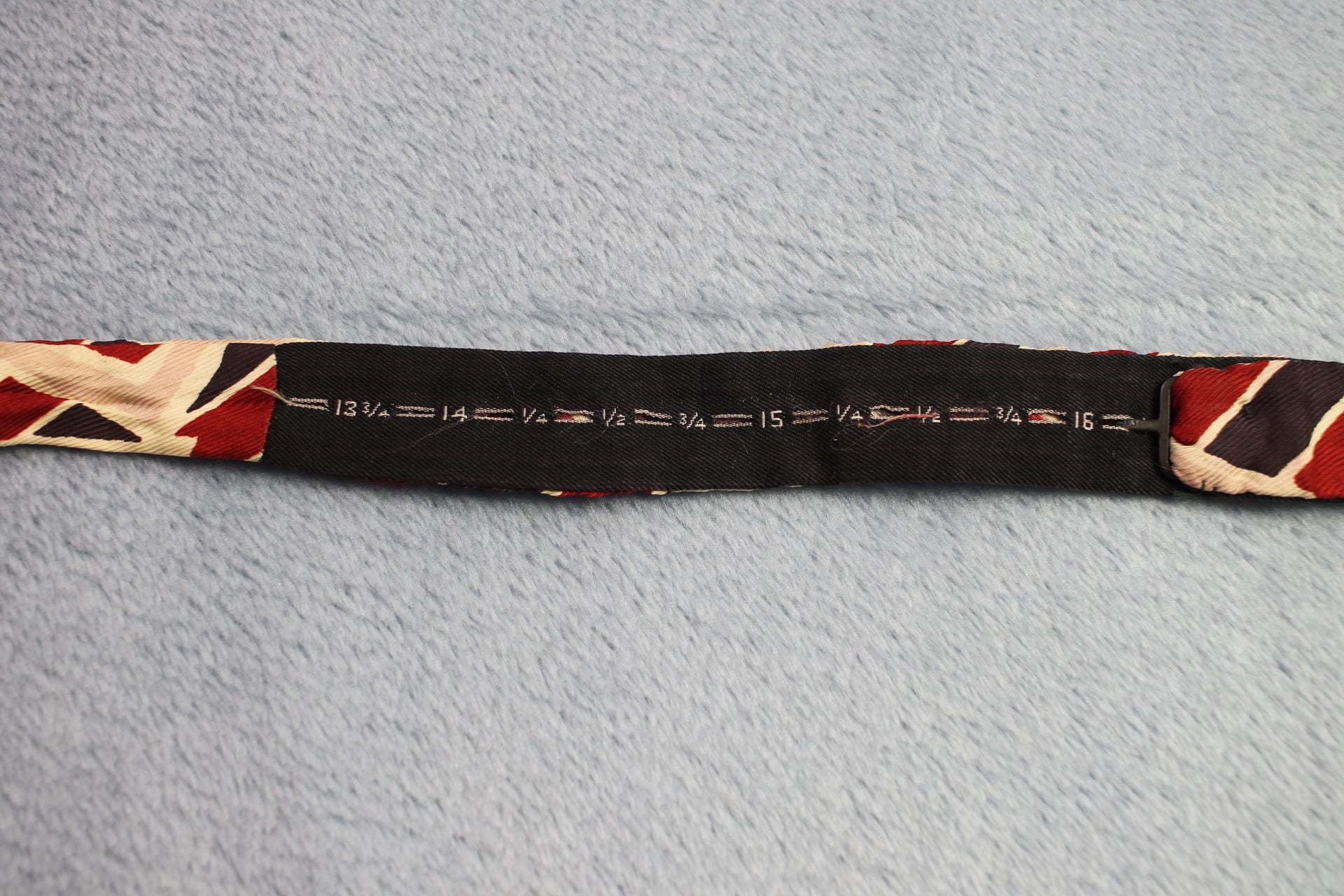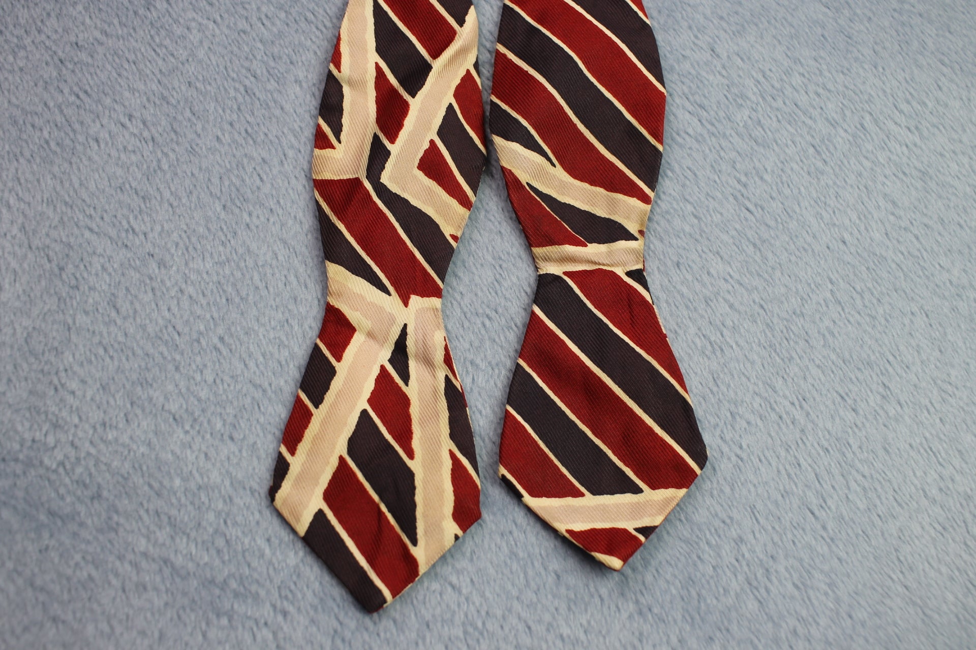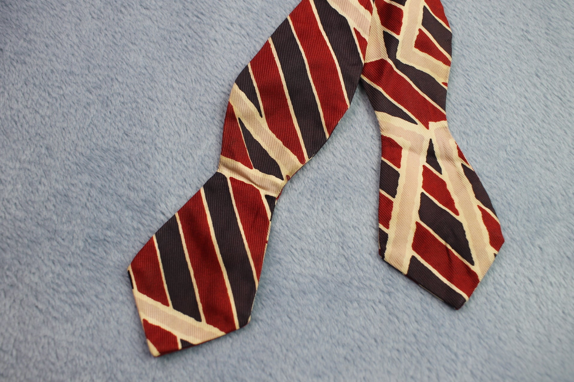 Vintage self tie arrow end blue red cream striped pattern bow tie adjustable