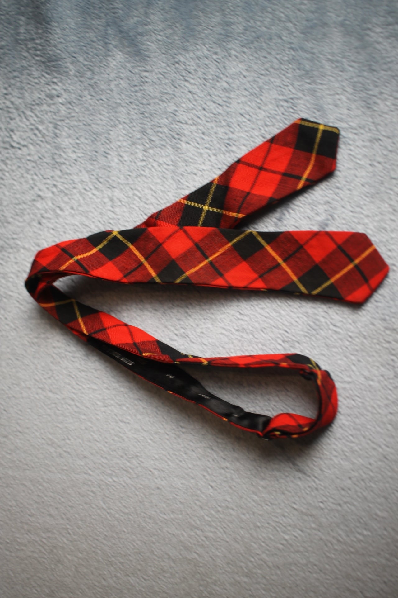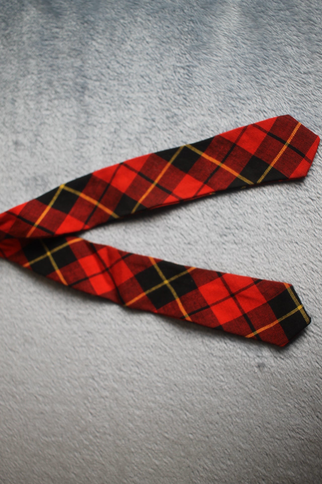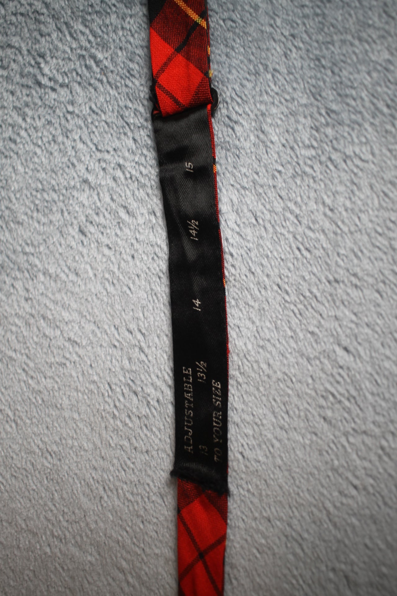 Vintage self tie arrow end red black tartan pattern bow tie adjustable