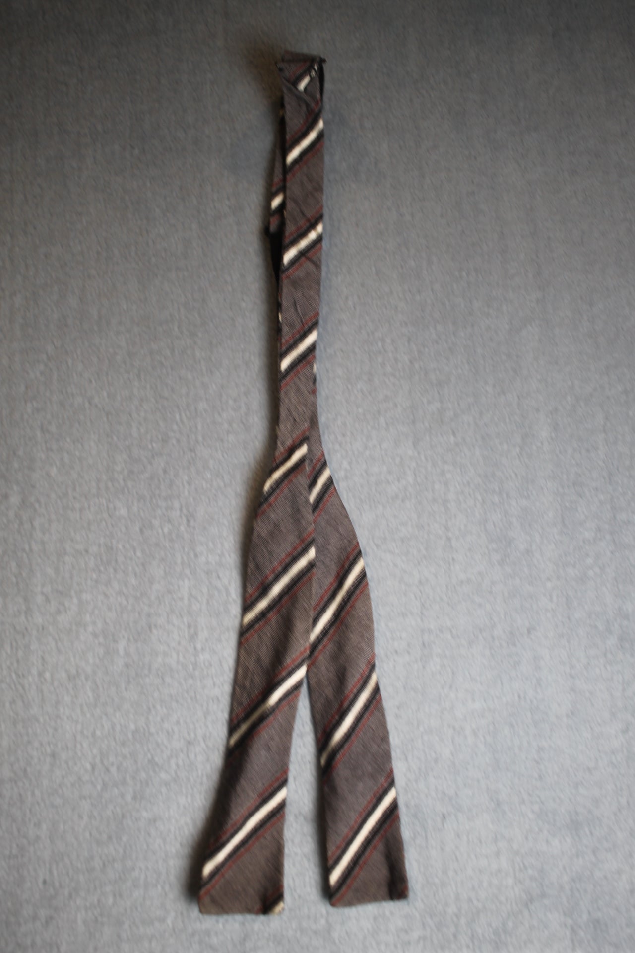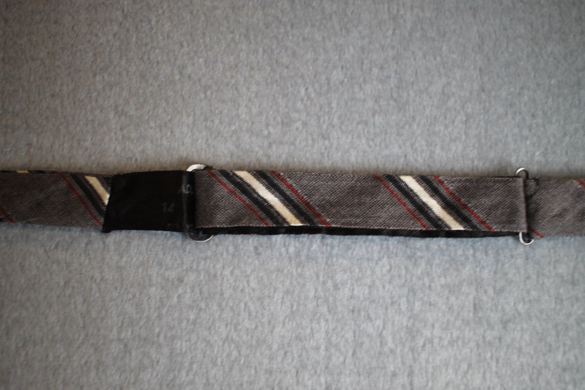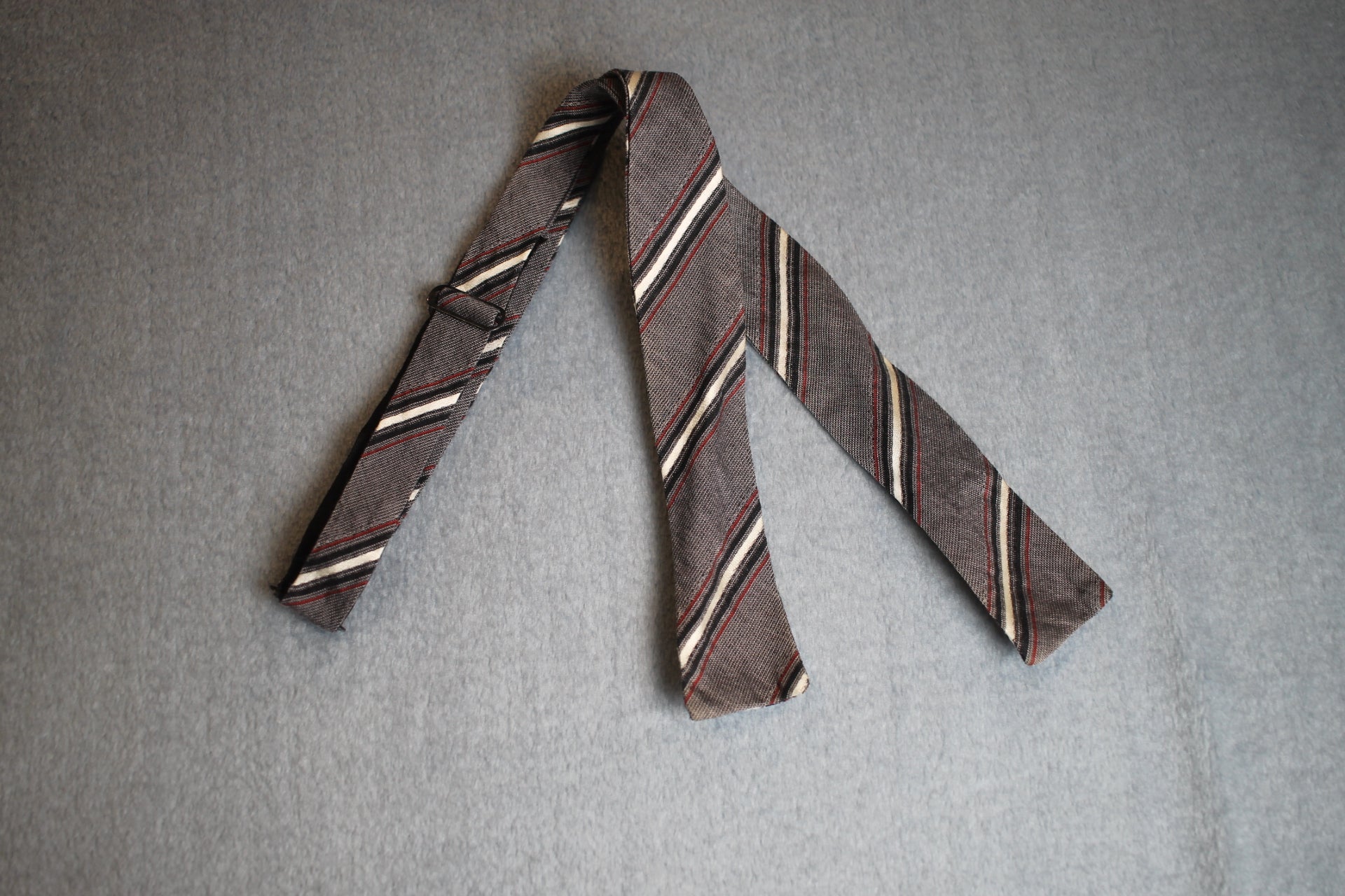 Vintage self tie paddle end dark grey white red striped pattern bow tie adjustable
