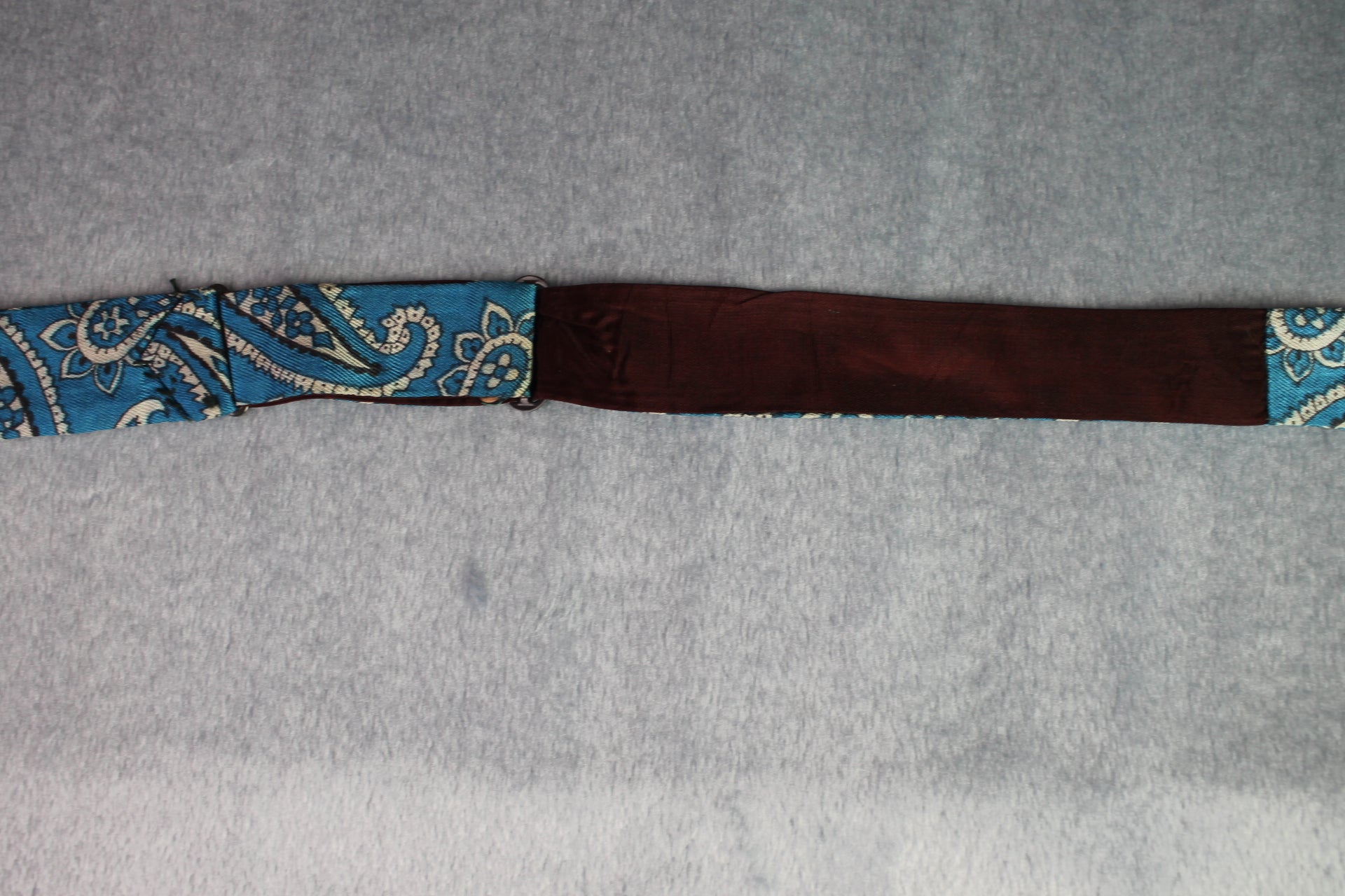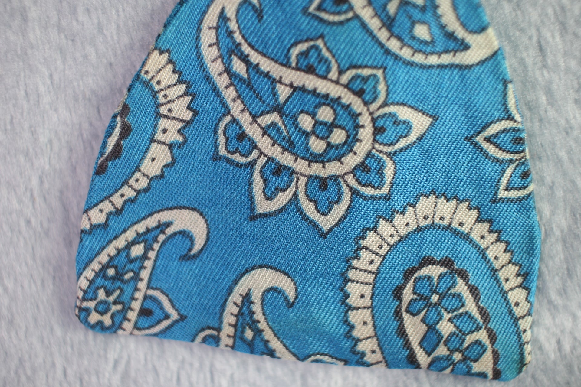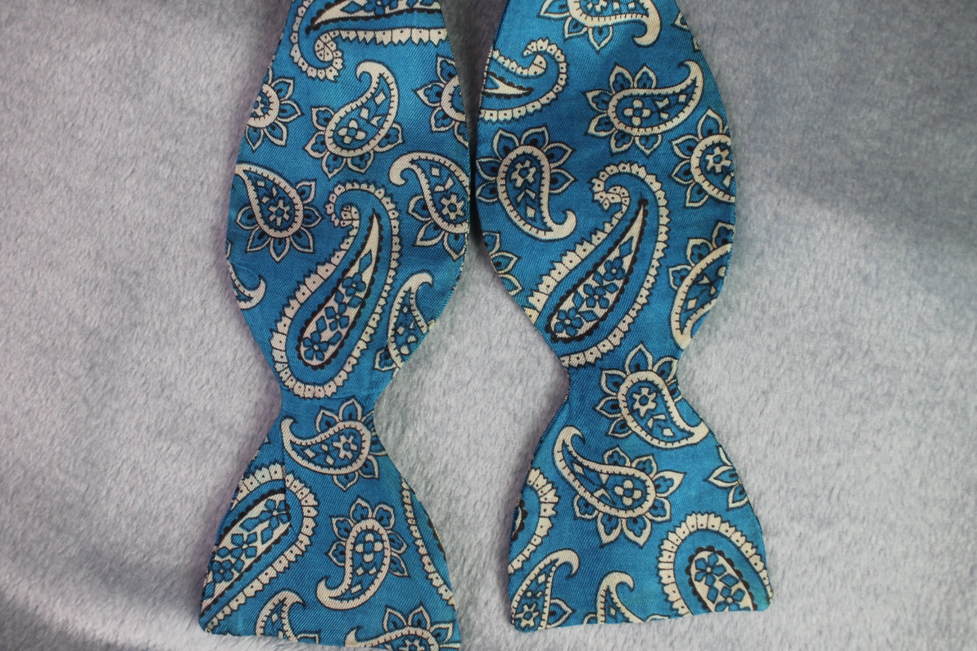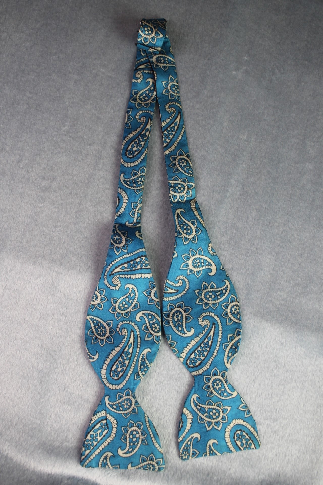 Vintage self tie thistle end blue white pattern bow tie adjustable