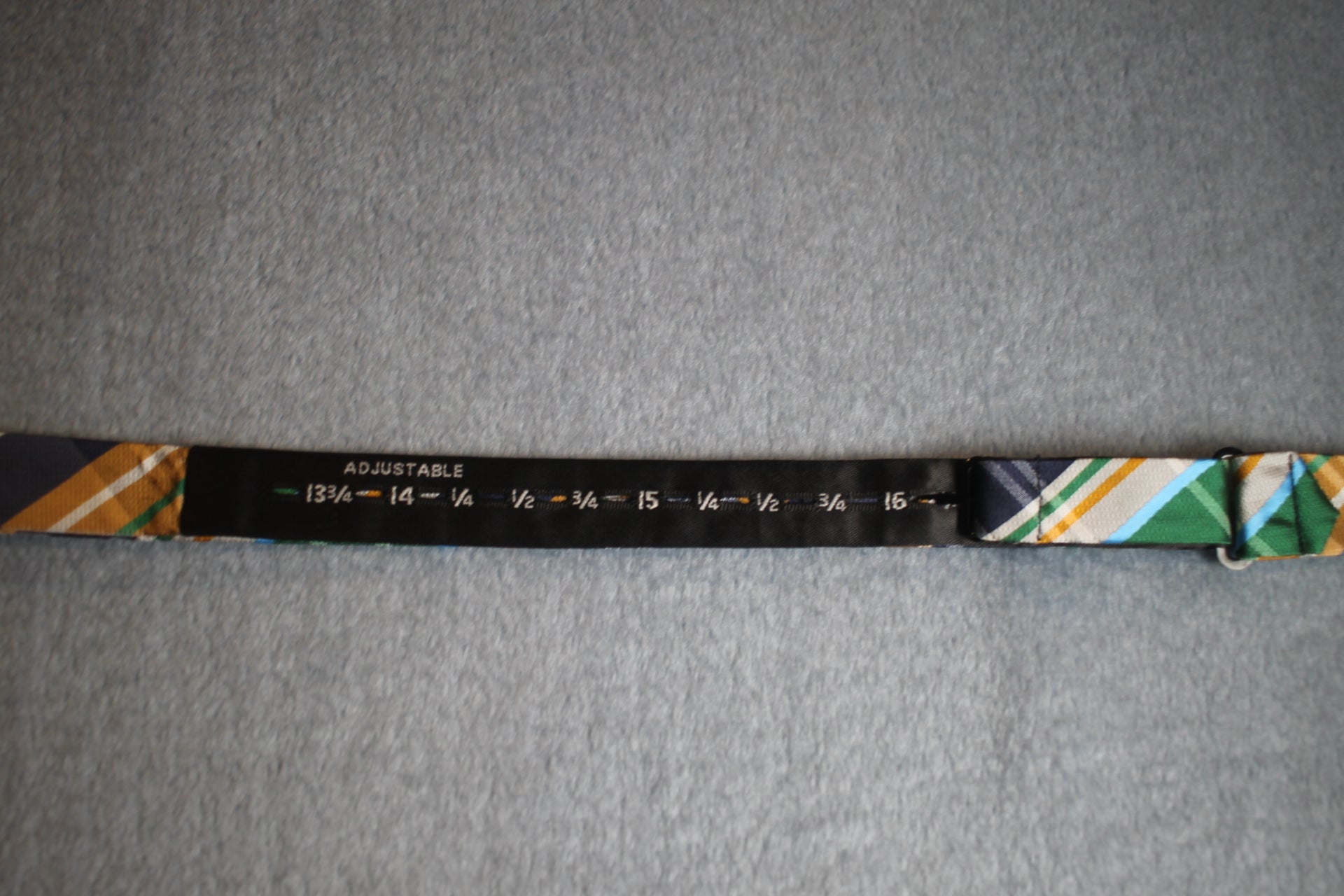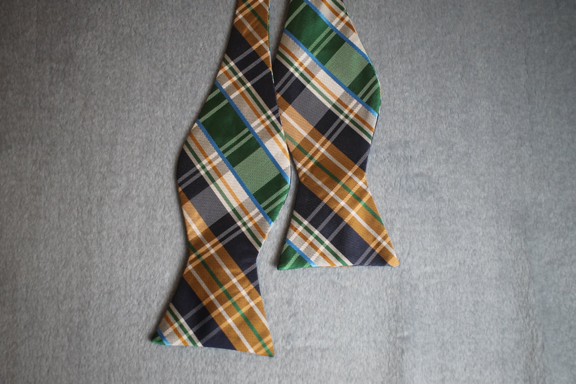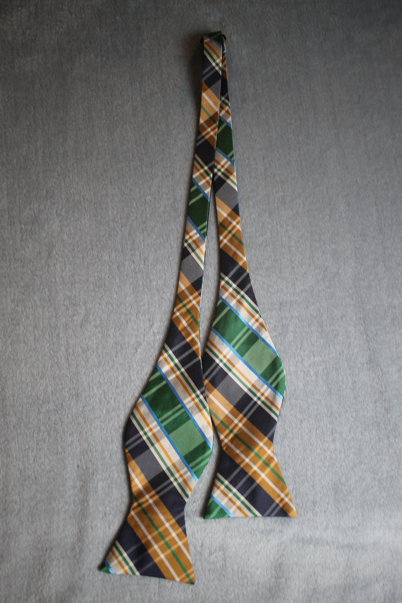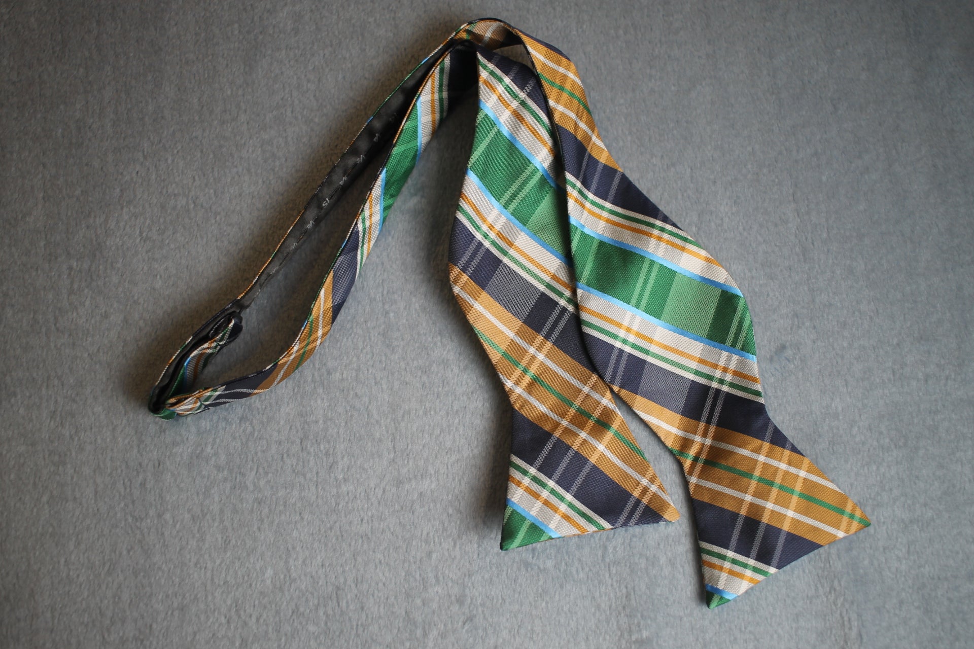 Vintage self tie thistle end green blue brown tartan pattern bow tie adjustable
