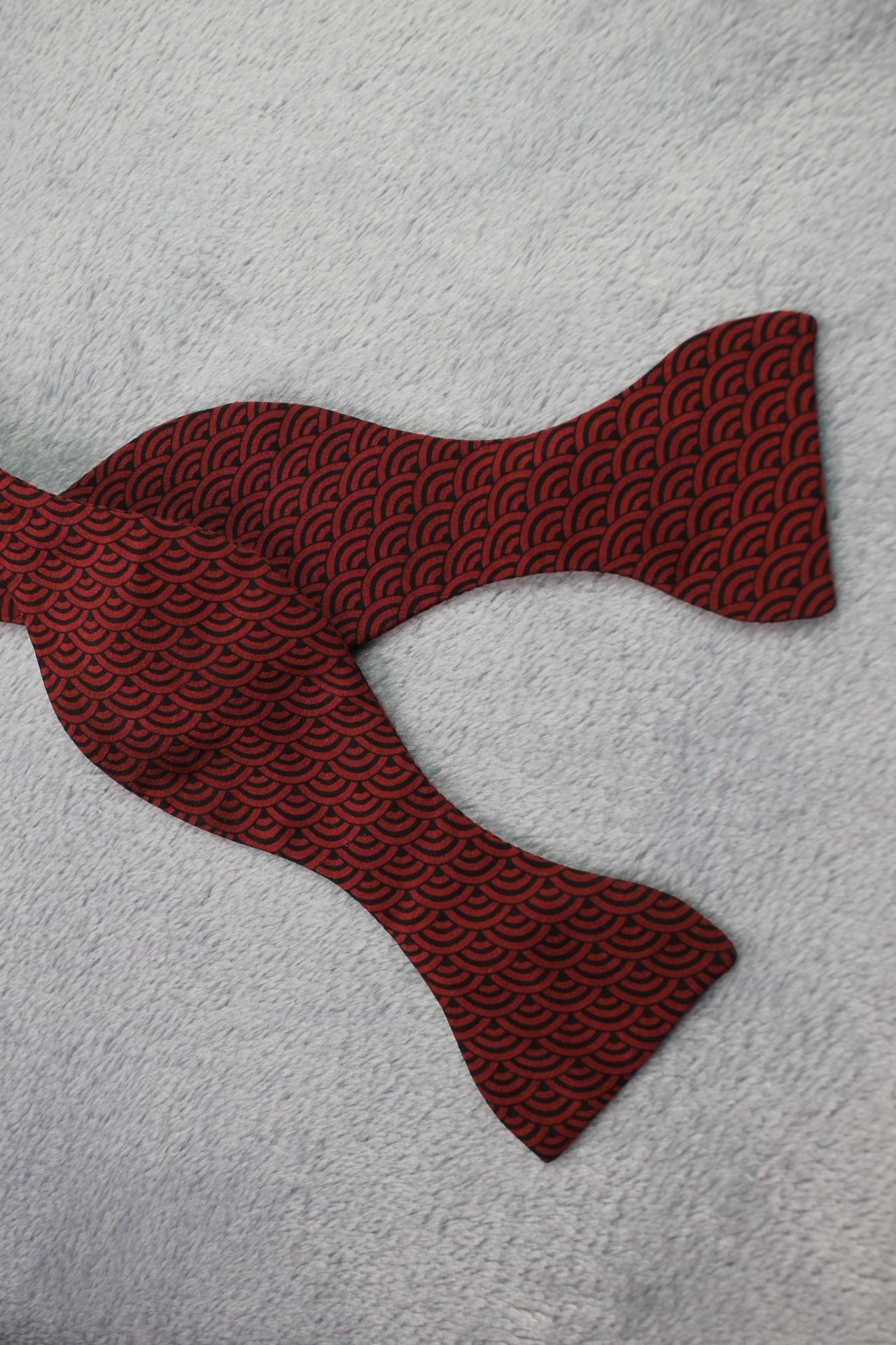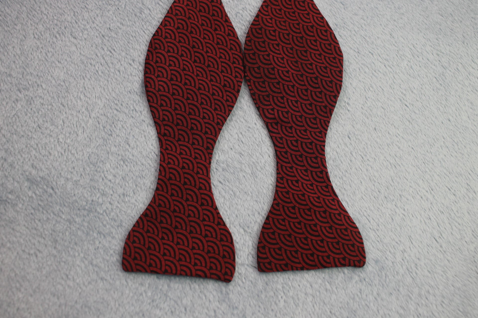 Vintage self tie thistle end purple black pattern bow tie adjustable