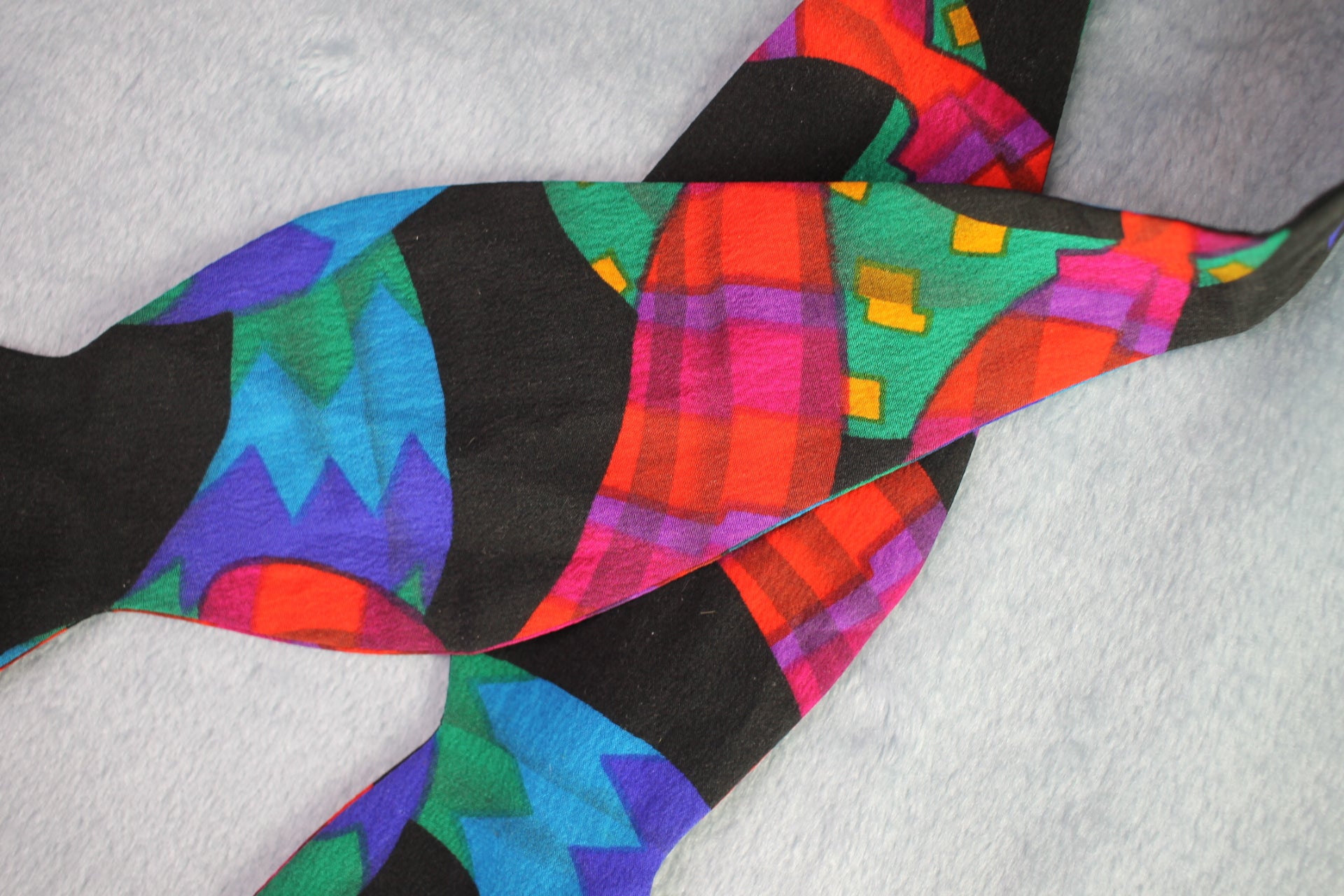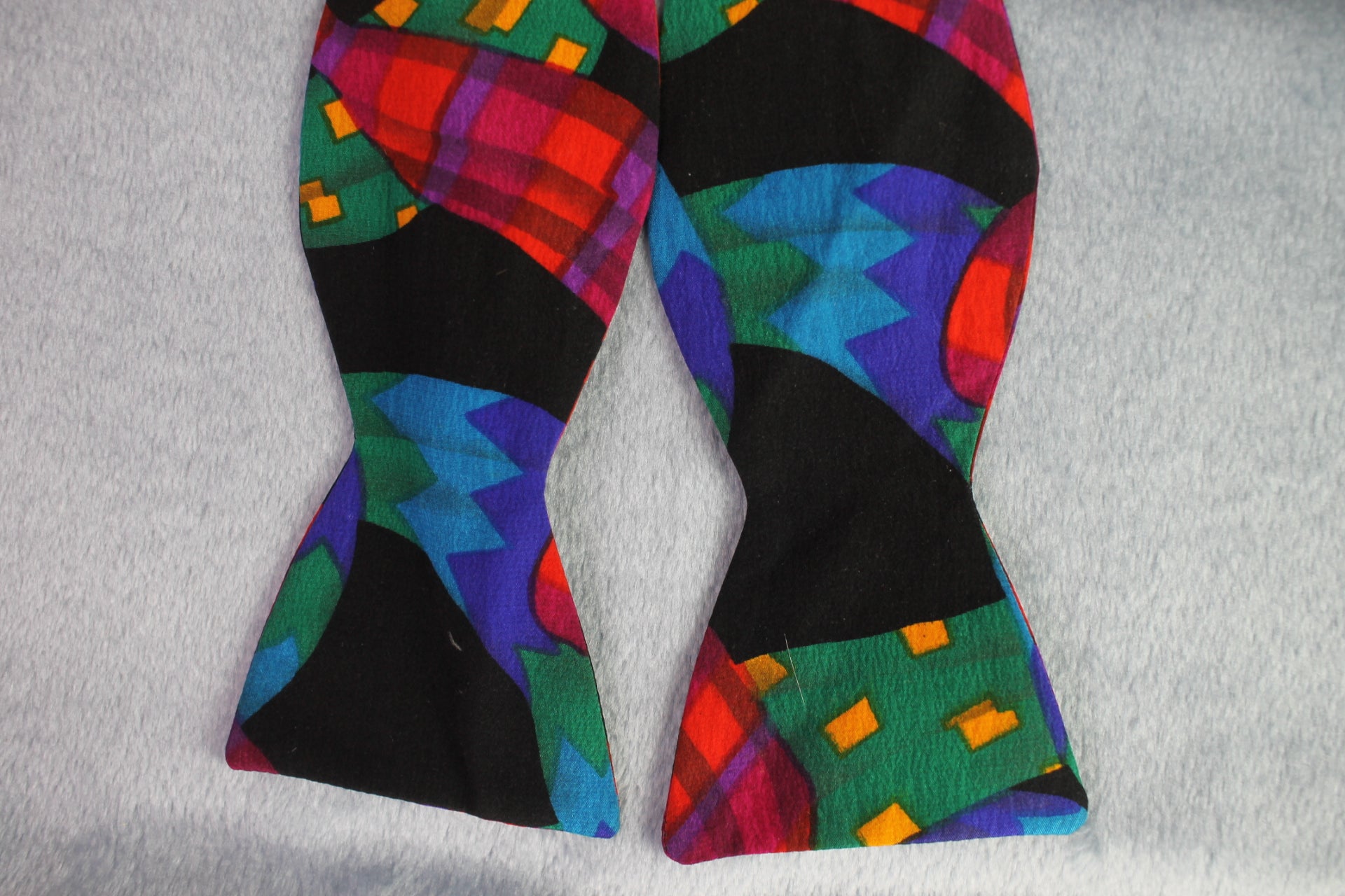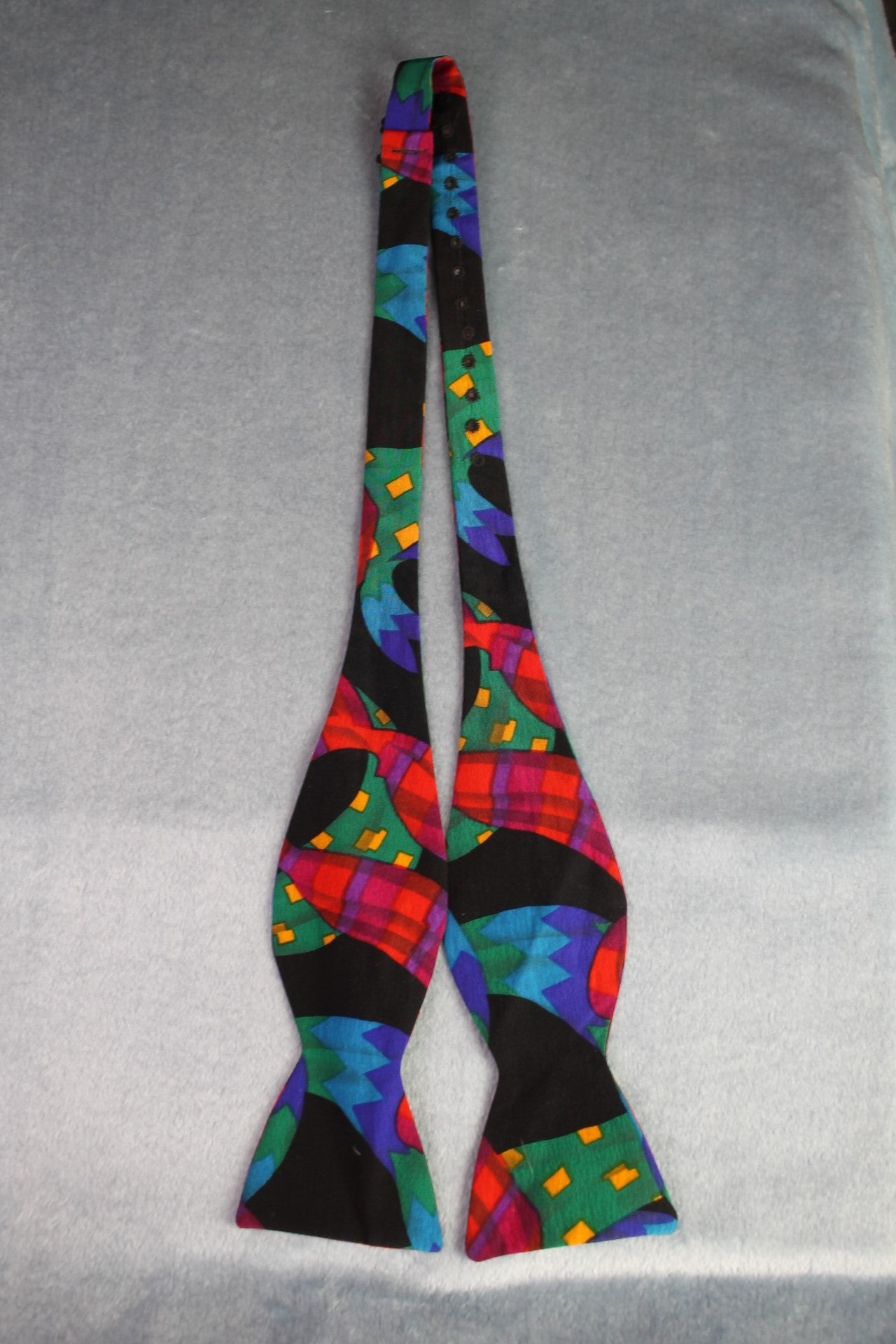 Vintage self tie thistle end red green purple black pattern bow tie adjustable