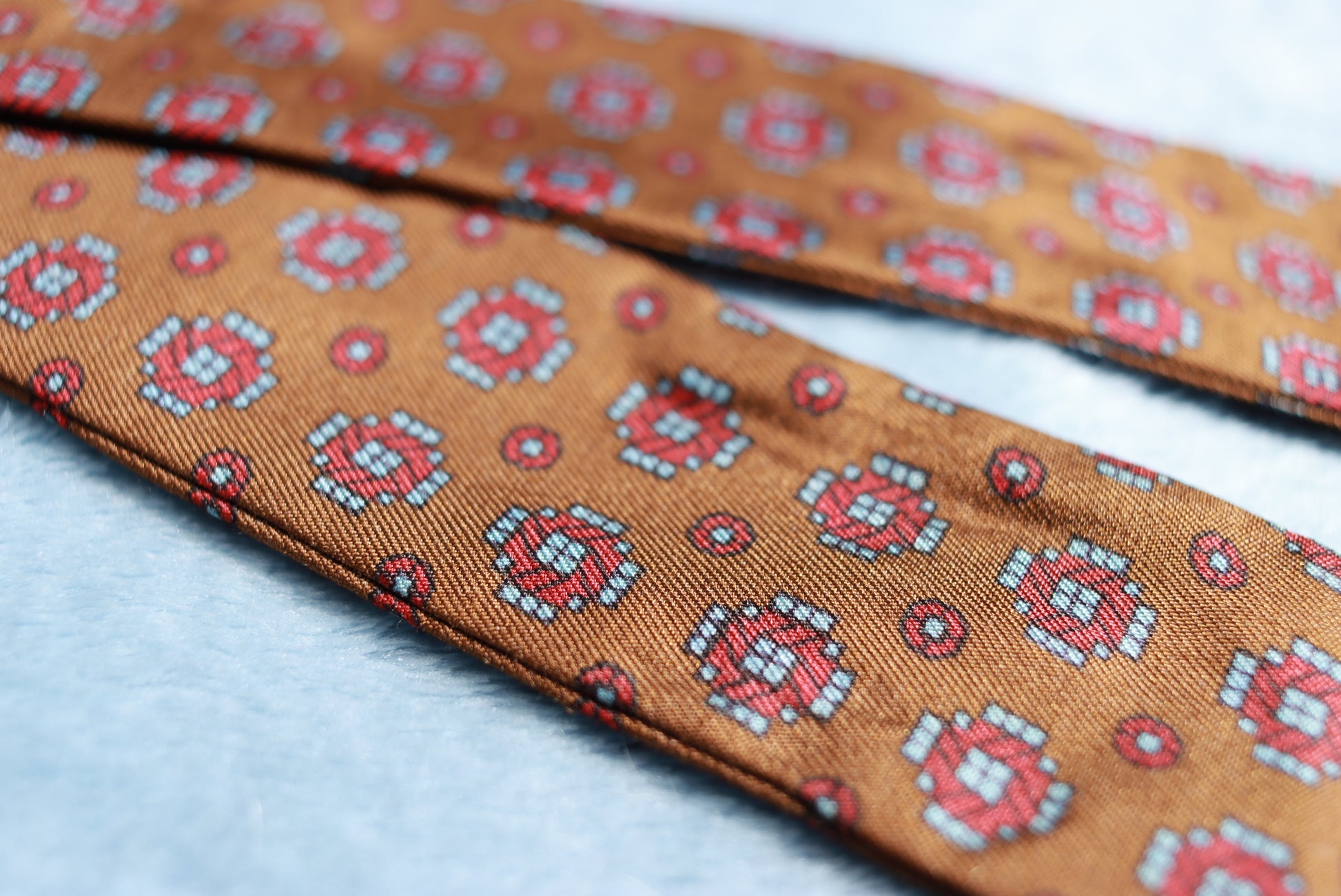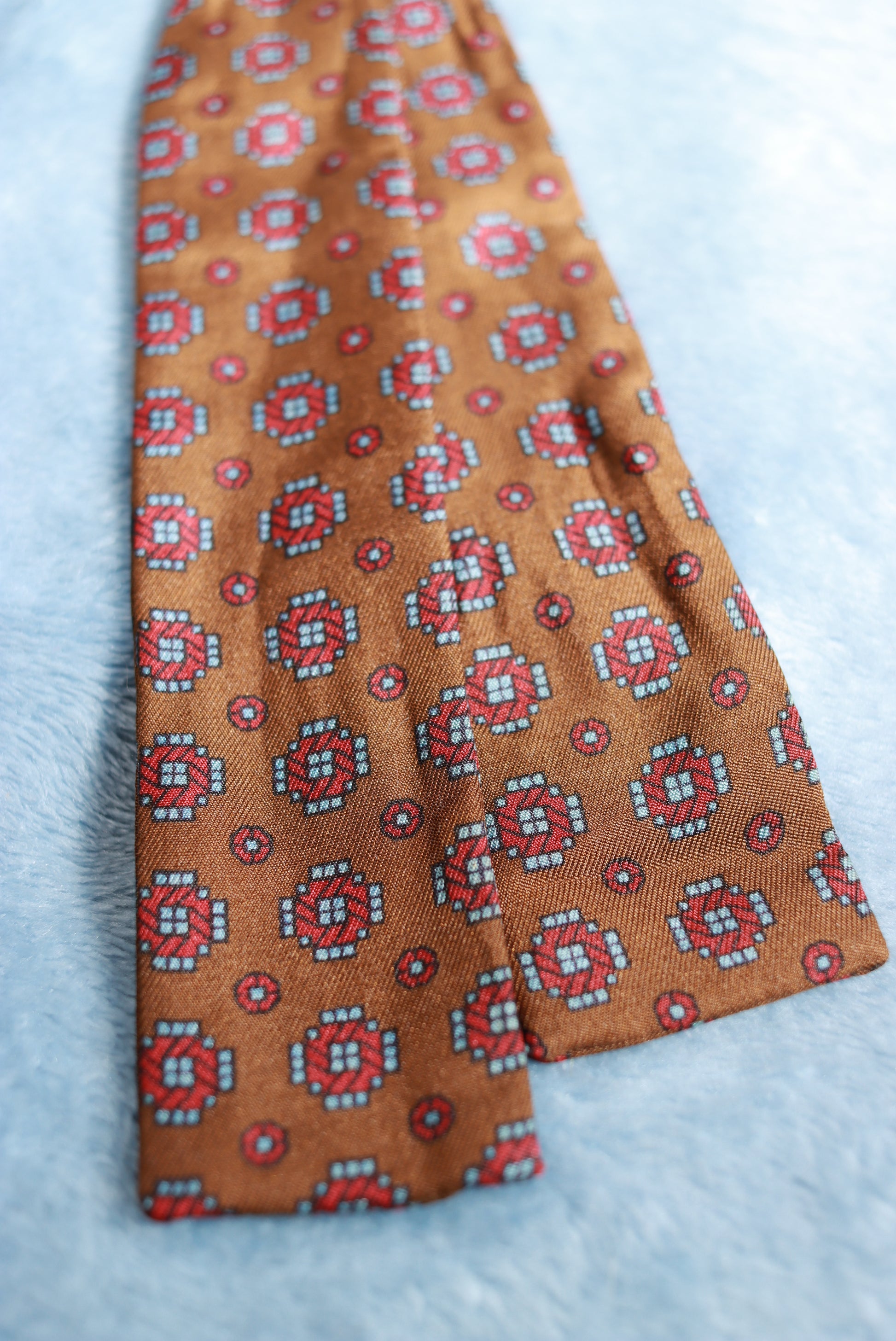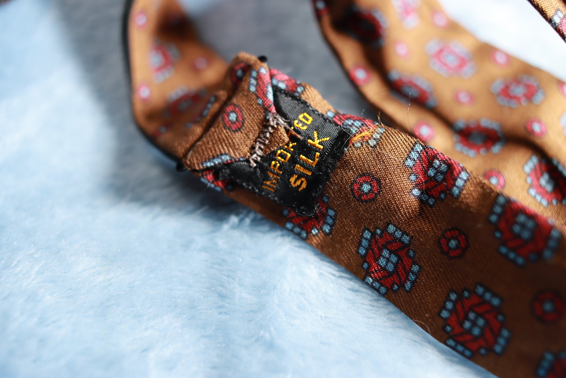 Vintage Silk Paddle Brown Repeat Pattern Bow Tie