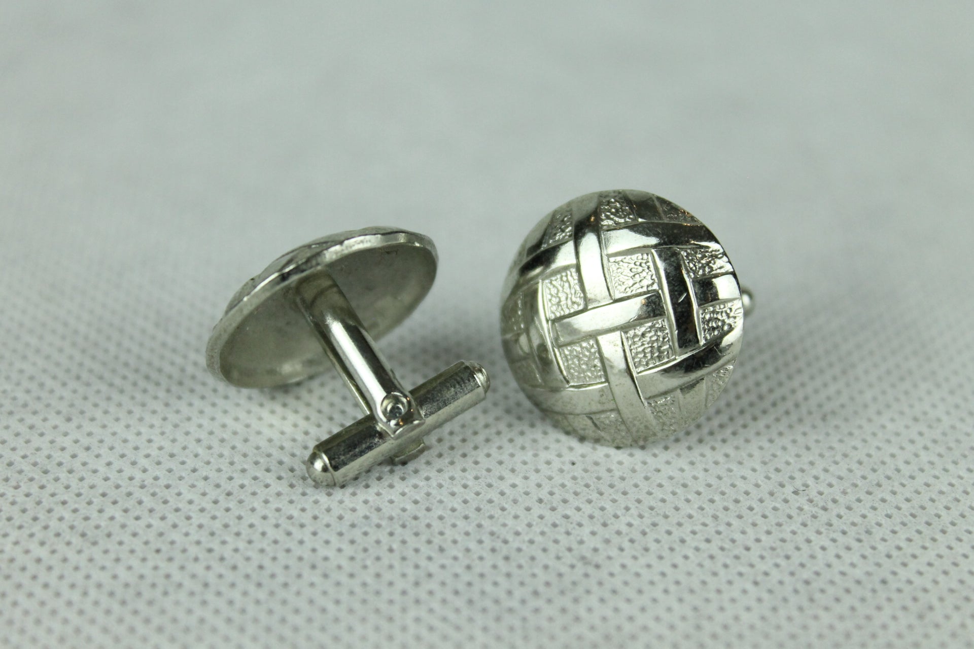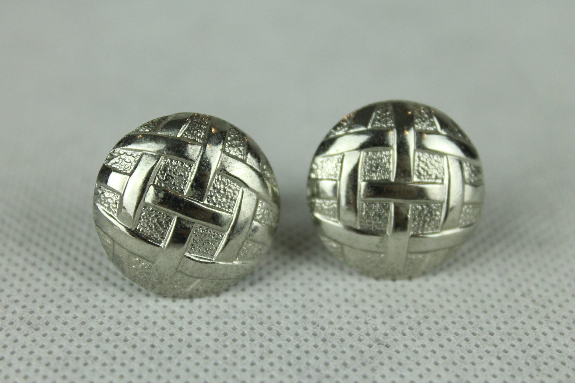 Vintage Silver Basket Weave Large Button Style Cuff Links