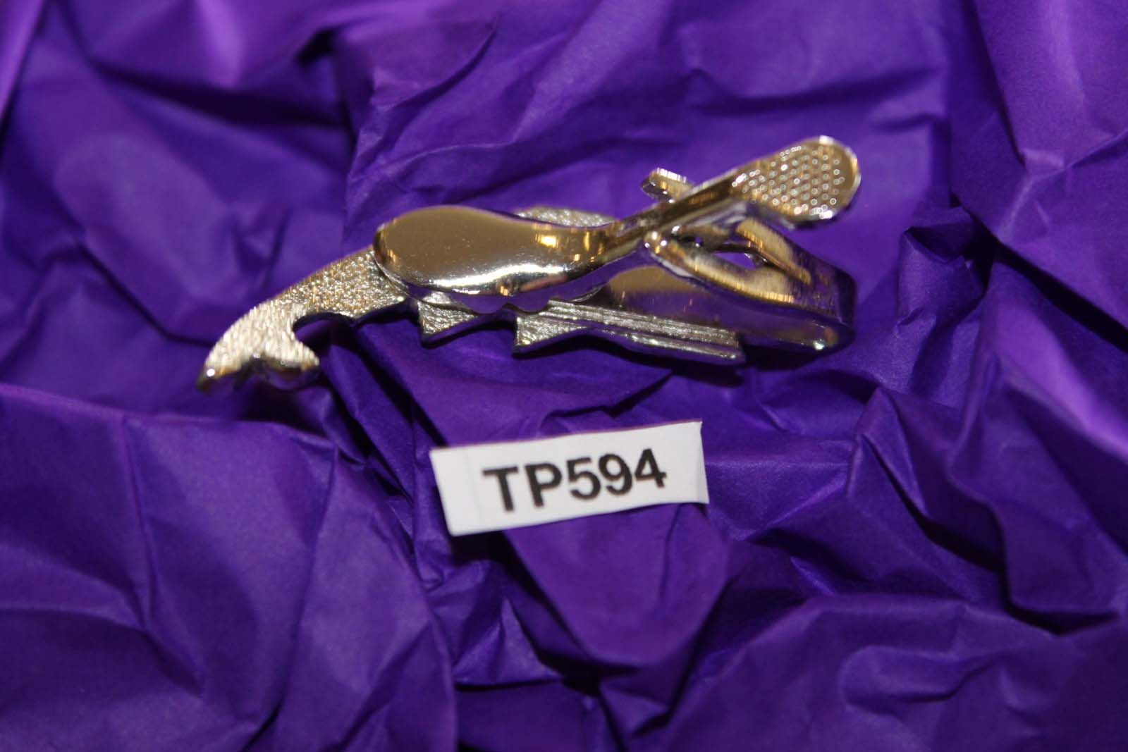 Vintage Silver Fish Trout Salmon Red Glass Stone Eye Tie Clip