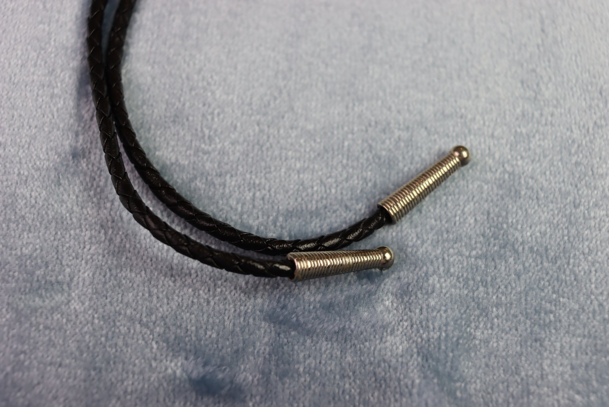 Black woven cord (90cm total length), silver metal aiglets