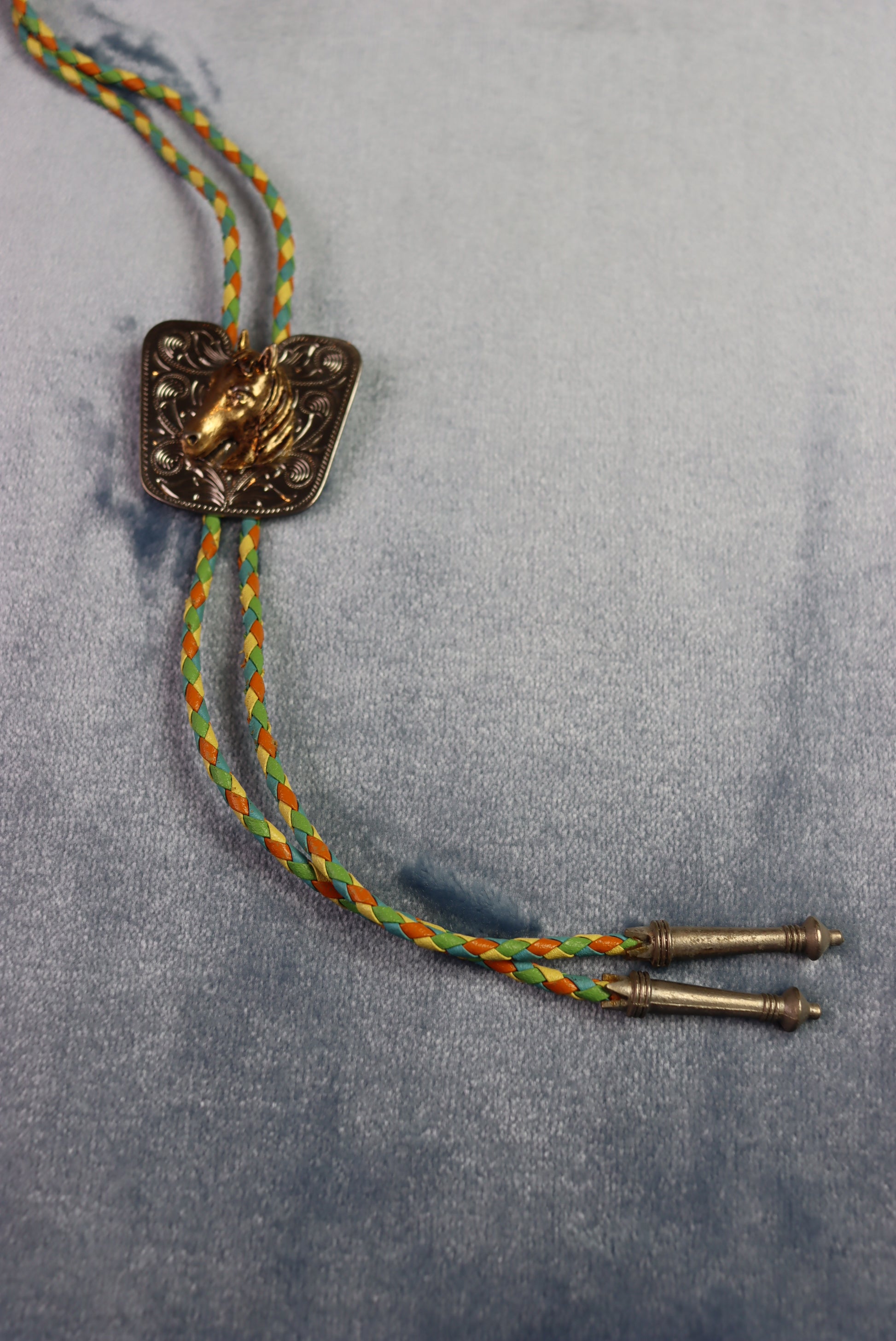 Vintage Silver Metal & Gold Horse Head Bolo Western Tie