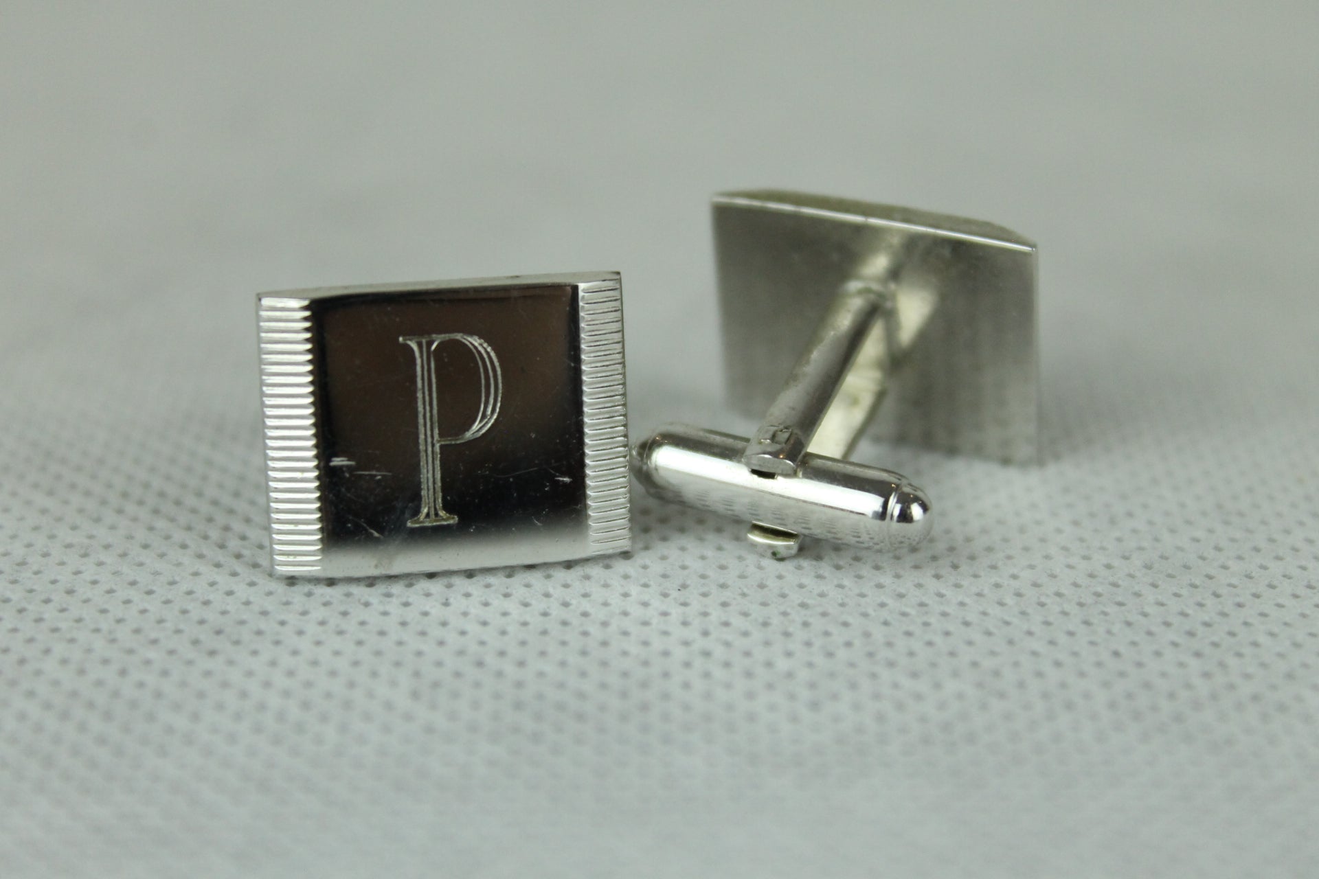 Vintage Silver Metal Initial P Oblong Cufflinks