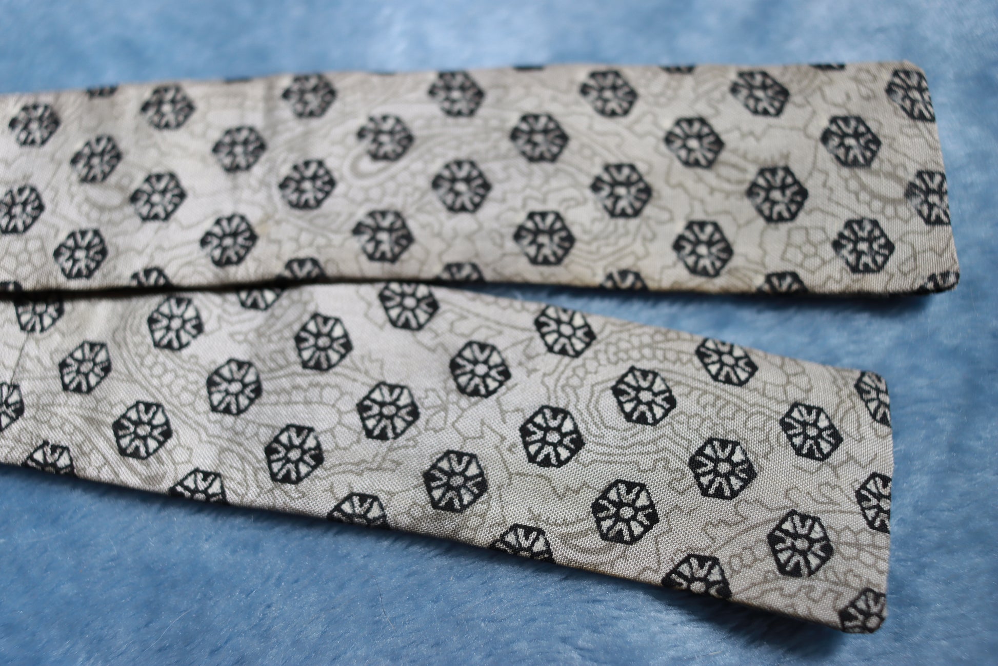 Vintage Silver Narrow Straight All Silk Bow Tie