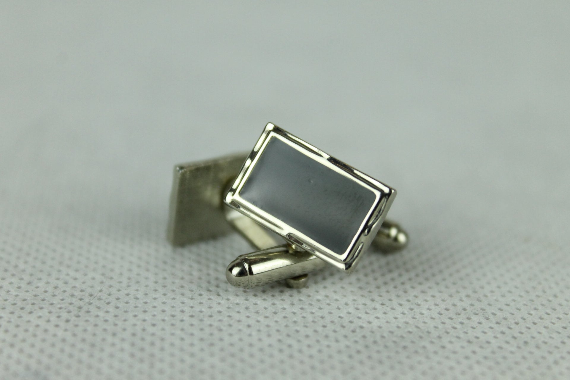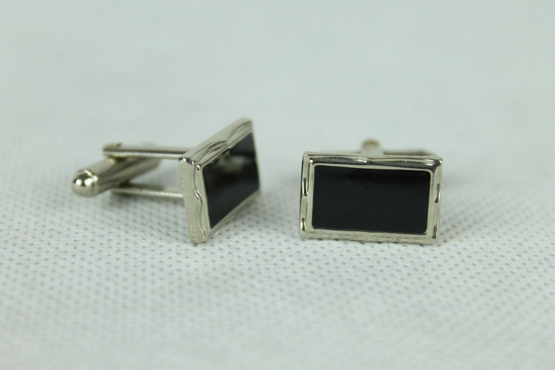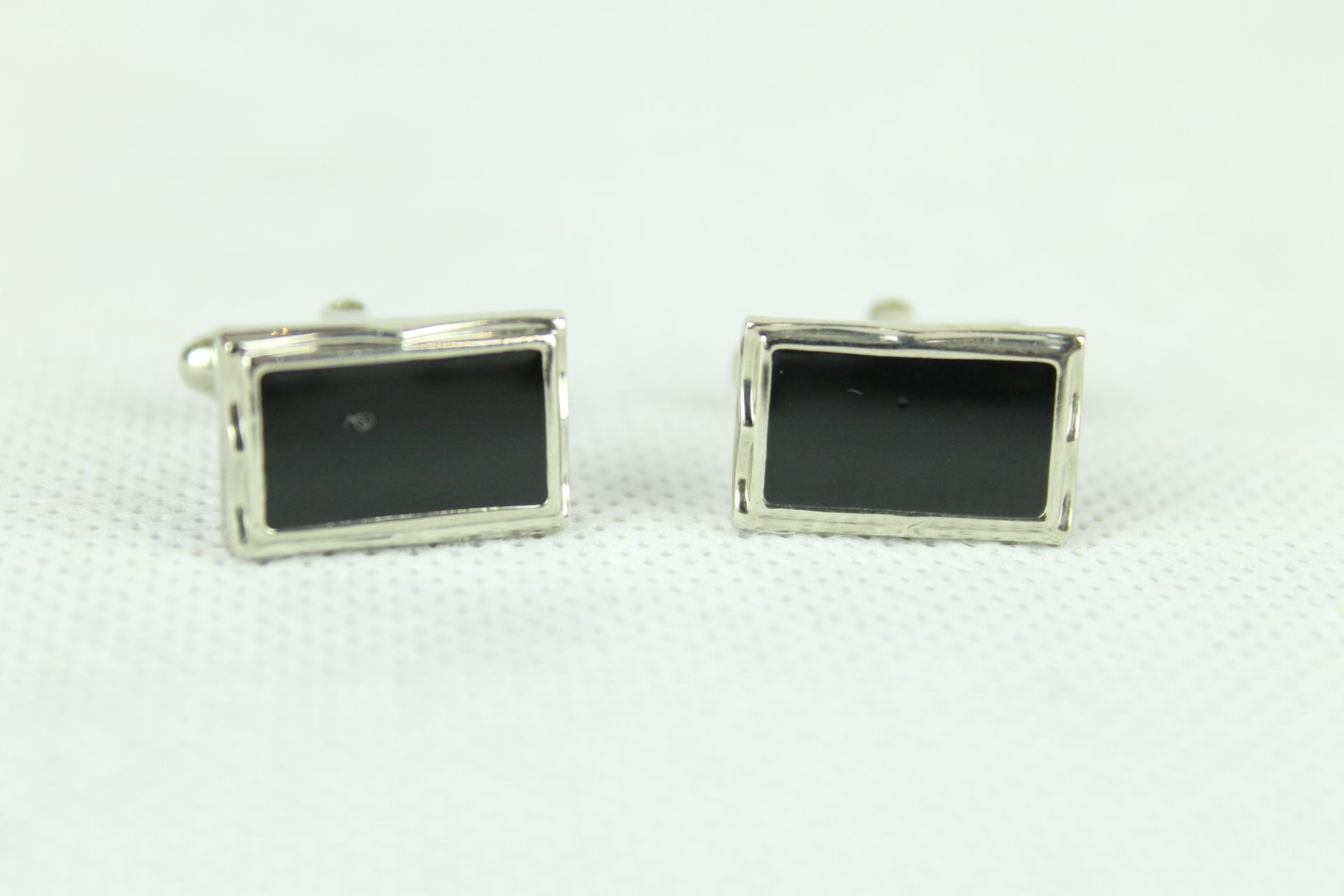 Vintage Silver Metal Oblong Black Inset Cuff Links