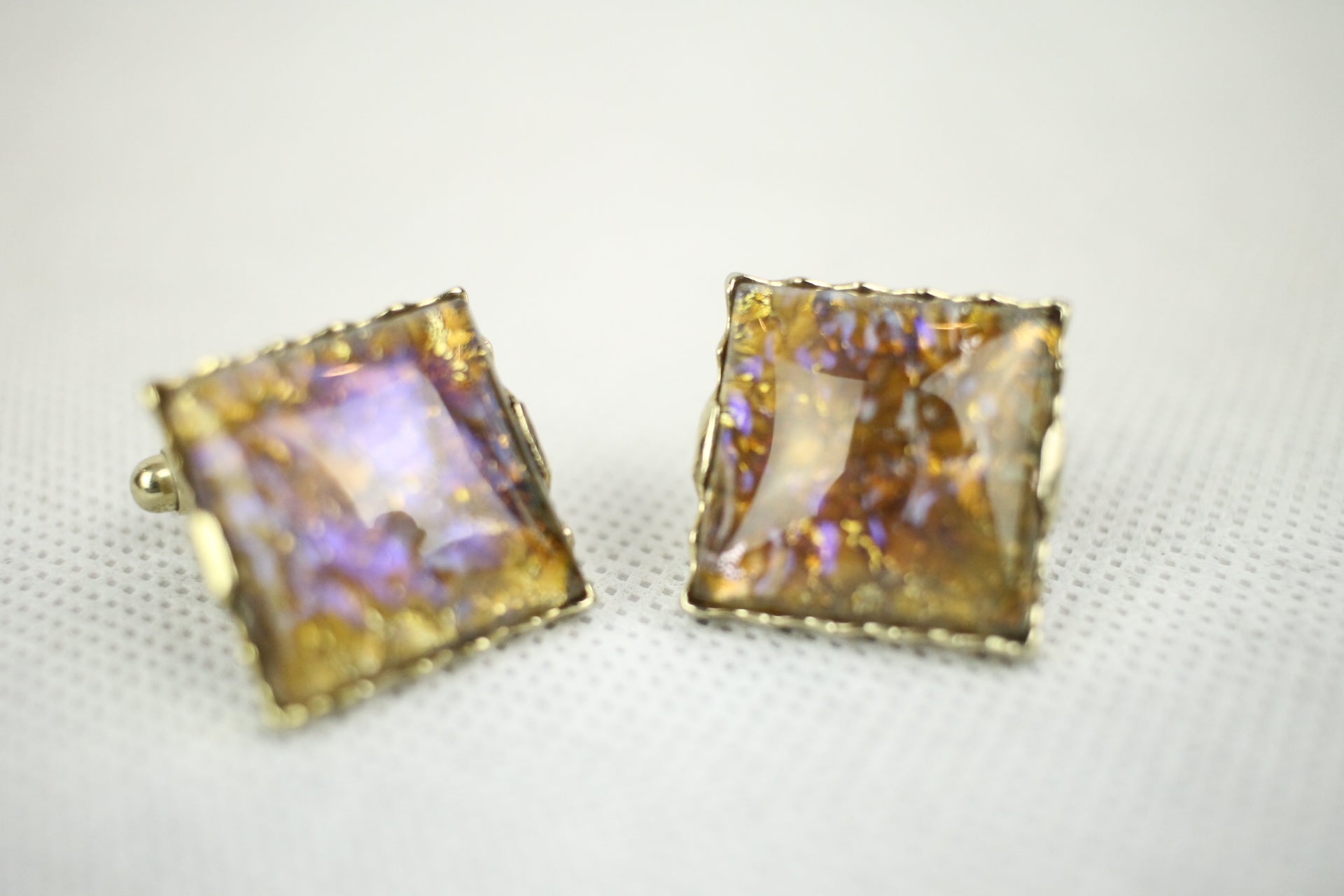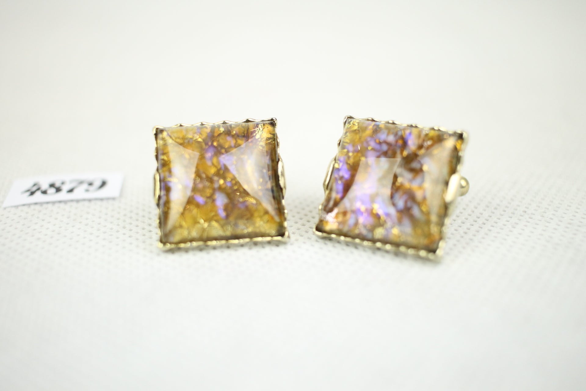 Vintage Sparkly Stone Gold Metal Push Through Cuff Links
