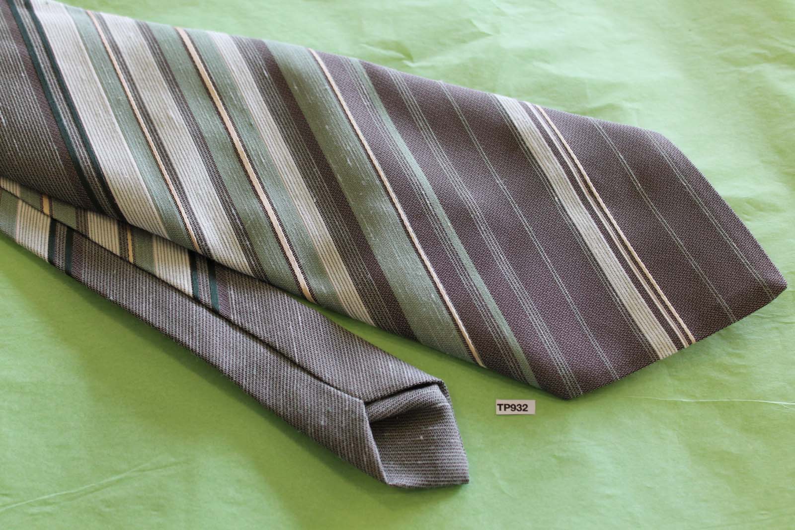 Vintage Tootal mint green grey stripe wide kipper tie 1970's