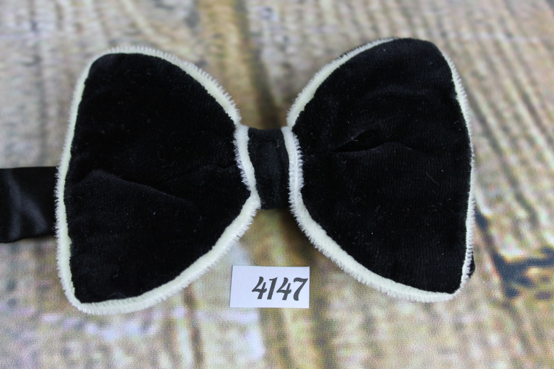 Vintage Unusual 1970s Black Ivory Trim Velvet Pre-Tied Bow Tie