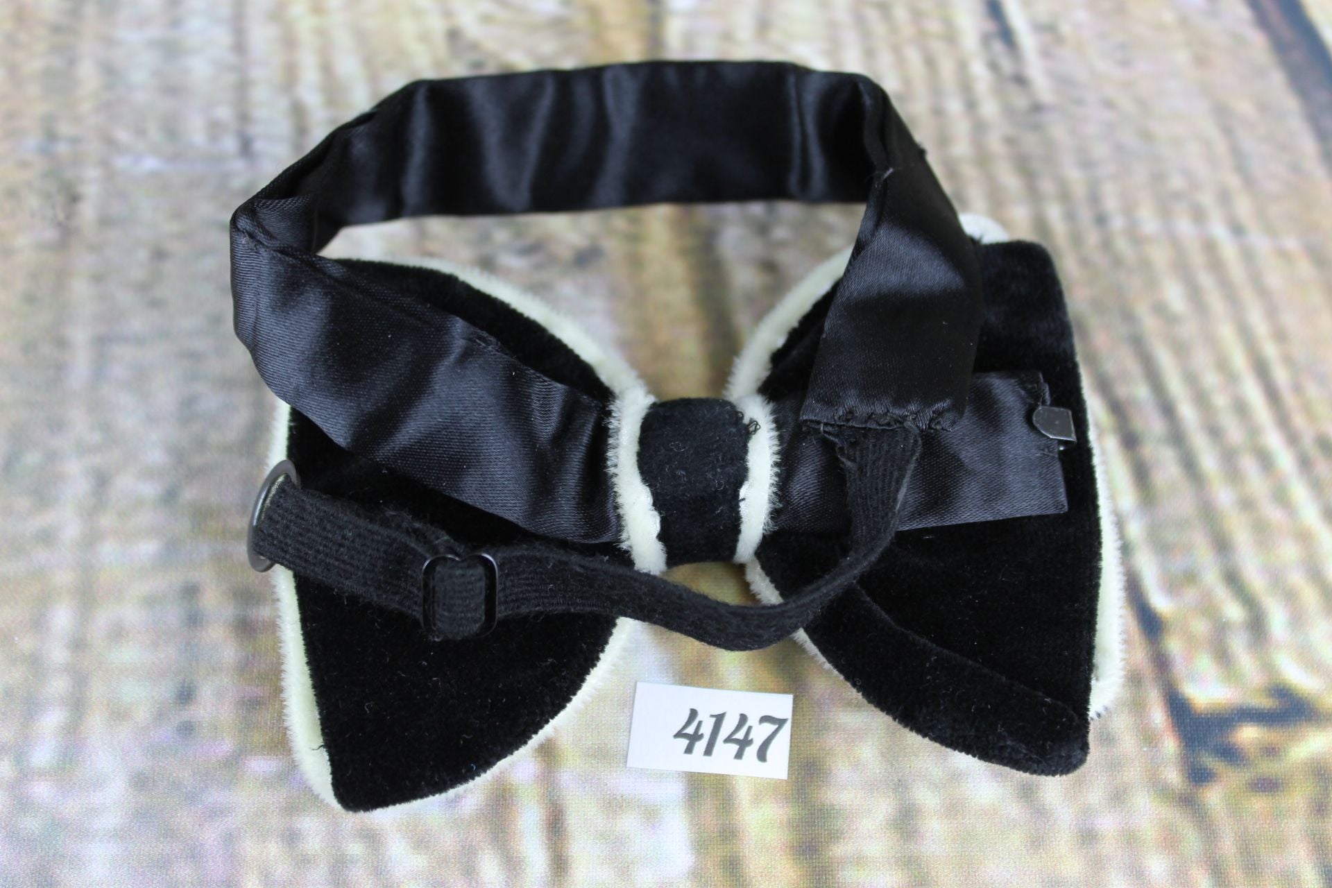 Vintage Unusual 1970s Black Ivory Trim Velvet Pre-Tied Bow Tie Adjustable