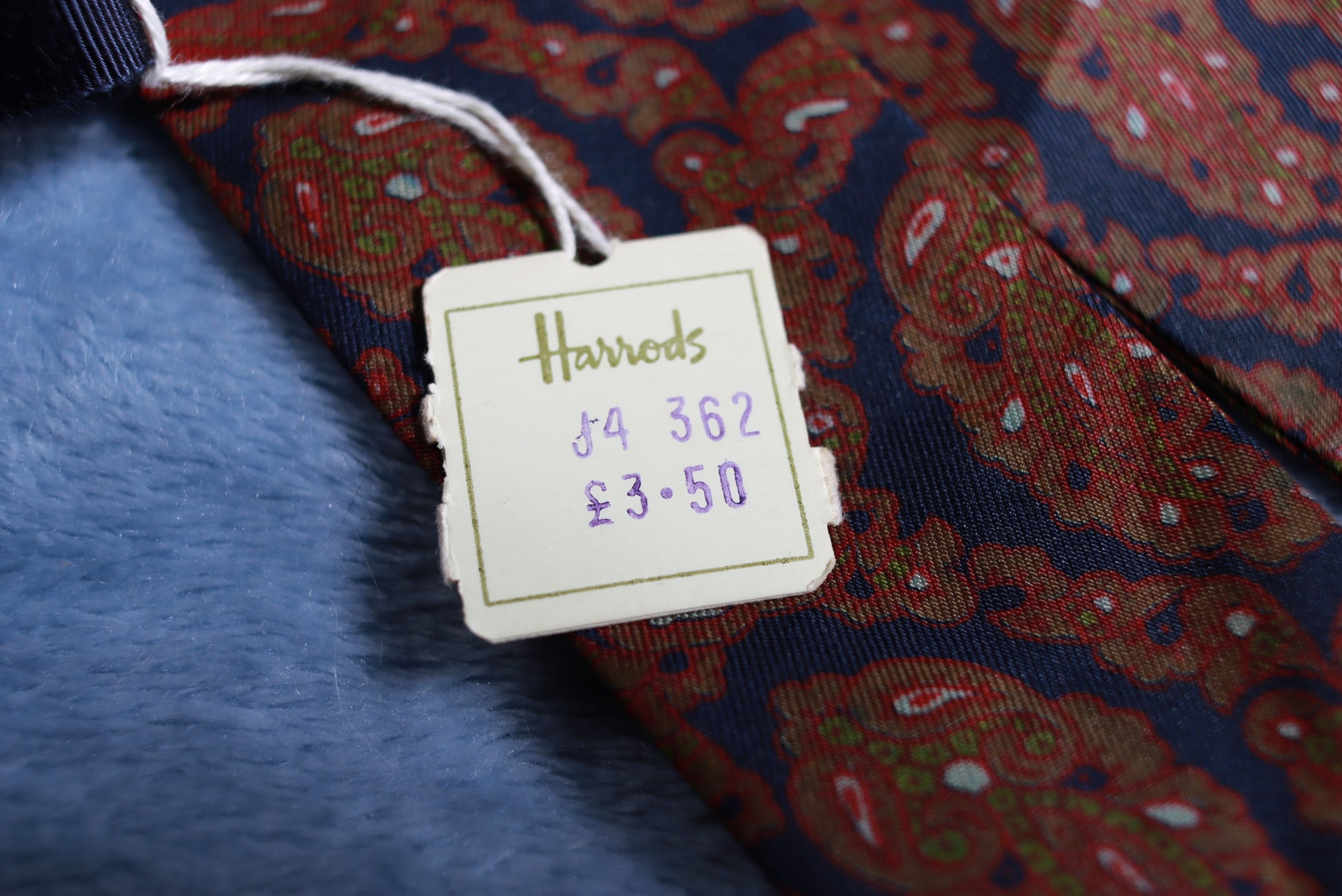 Vintage Unworn WIth Tags All Silk Harrods Dark Pattern Paddle Bow Tie
