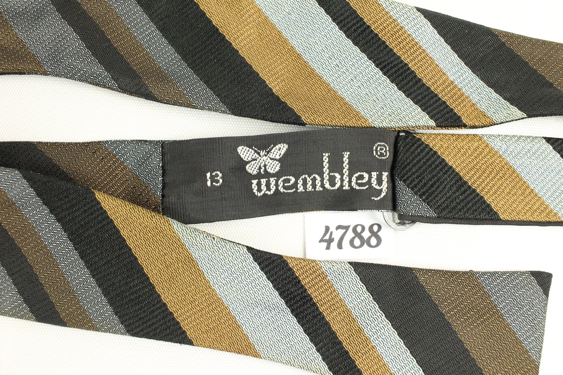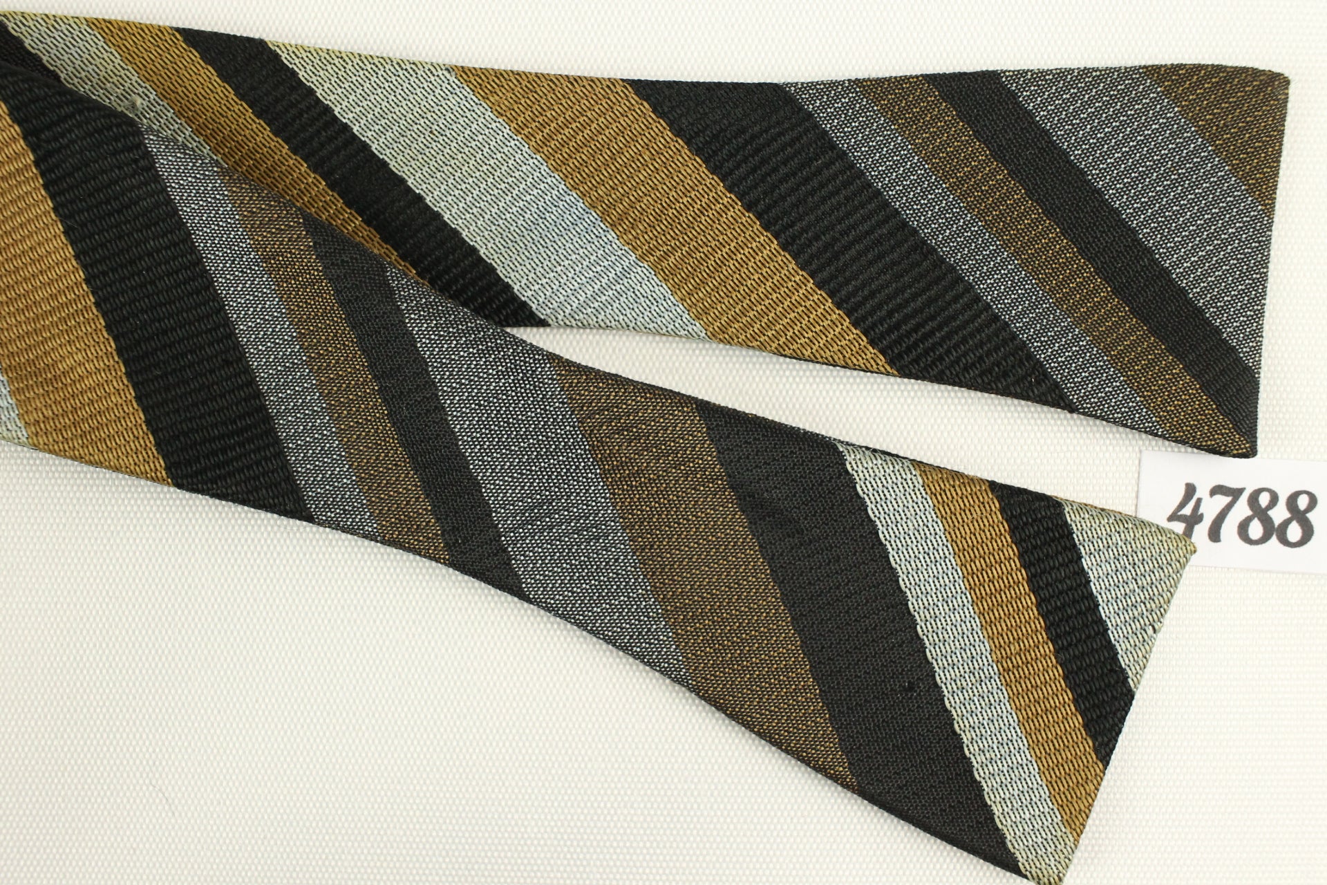 Vintage Wembley Self Tie Bow Tie Striped Narrow Thistle End Silver Grey Black Turmeric